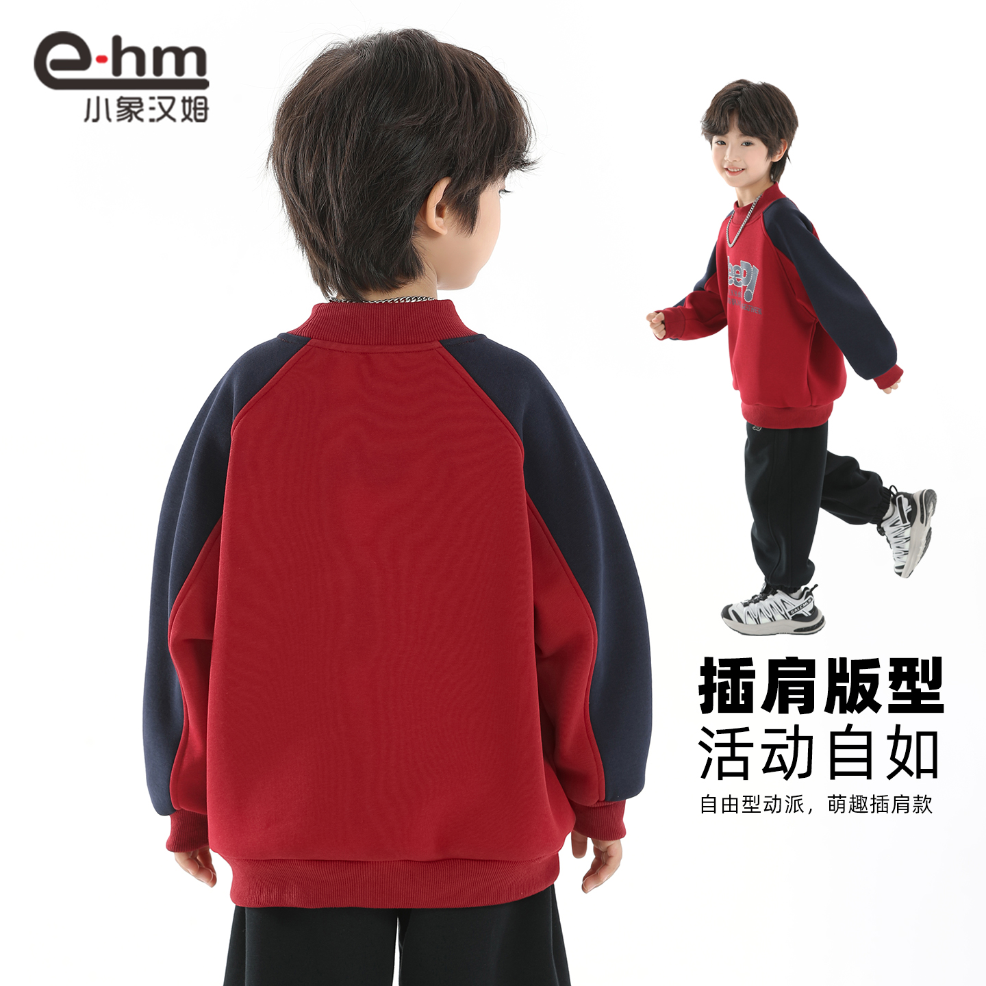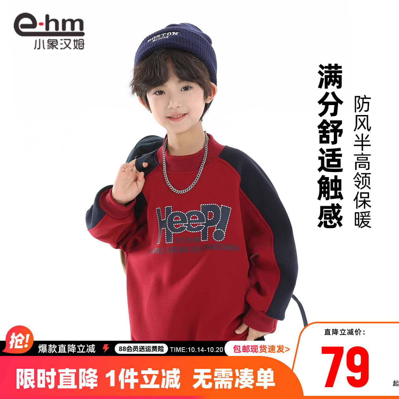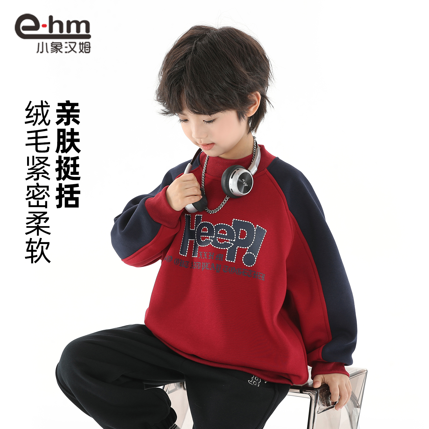 保暖打底半高领新年服 新款 小象汉姆童装 男童加绒卫衣儿童2025冬装