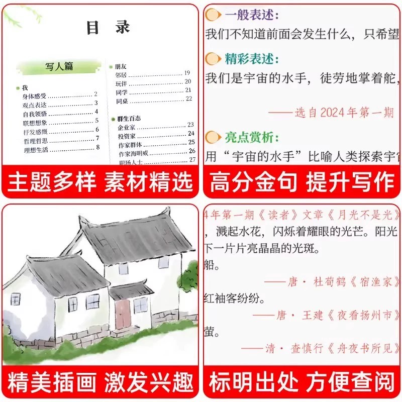中小学生写作技巧方法高分范文作文素材好词好句好段写景写物优美句子积累摘抄本作文金句一千例 读者作文金句1000例 官方正版