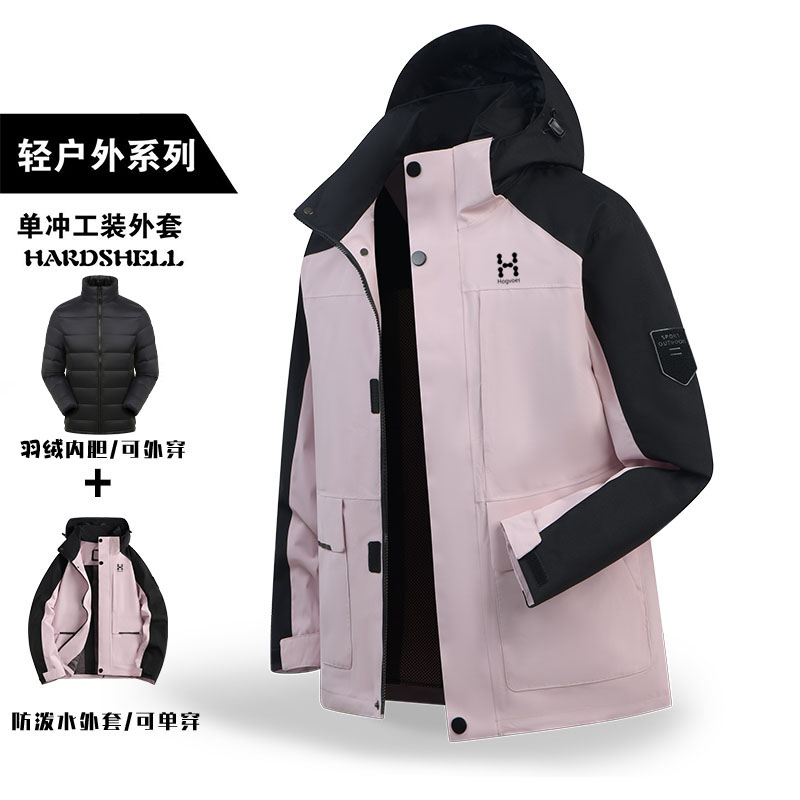 新款 户外冲锋夹克衣服秋季 罗蒙男士 可拆内胆外套 一衣三穿三防