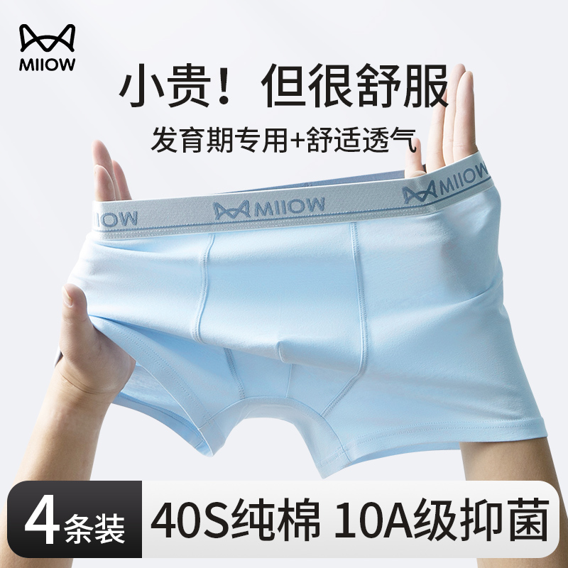 10A抑菌中大童男童短裤 猫人青少年纯棉内裤 男高中生发育期平角裤