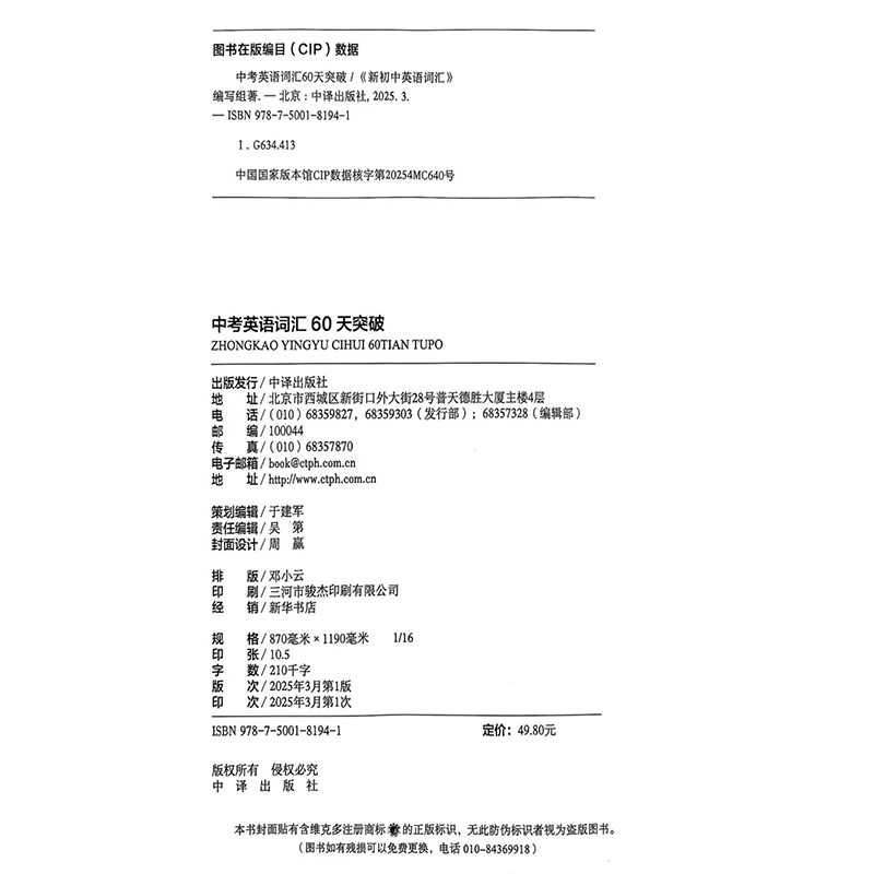 2025年3月新版 现货速发初中通用版 维克多中考英语词汇60天突破维克多英语官方正版 2026版