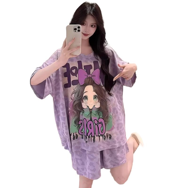 早秋小众设计感家居服慵懒卡通可外穿套装 睡衣女春秋季 带胸垫新款