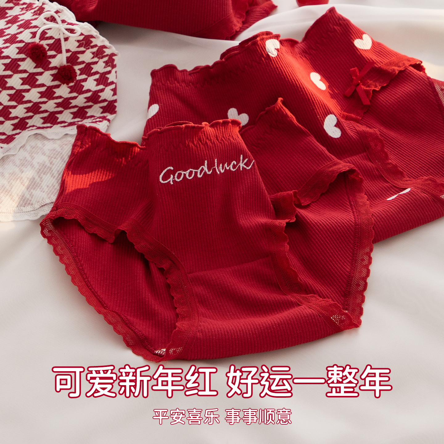 纯棉7a级抗菌发育期本命年三角短裤 芬腾少女红色内裤 女士2025新款