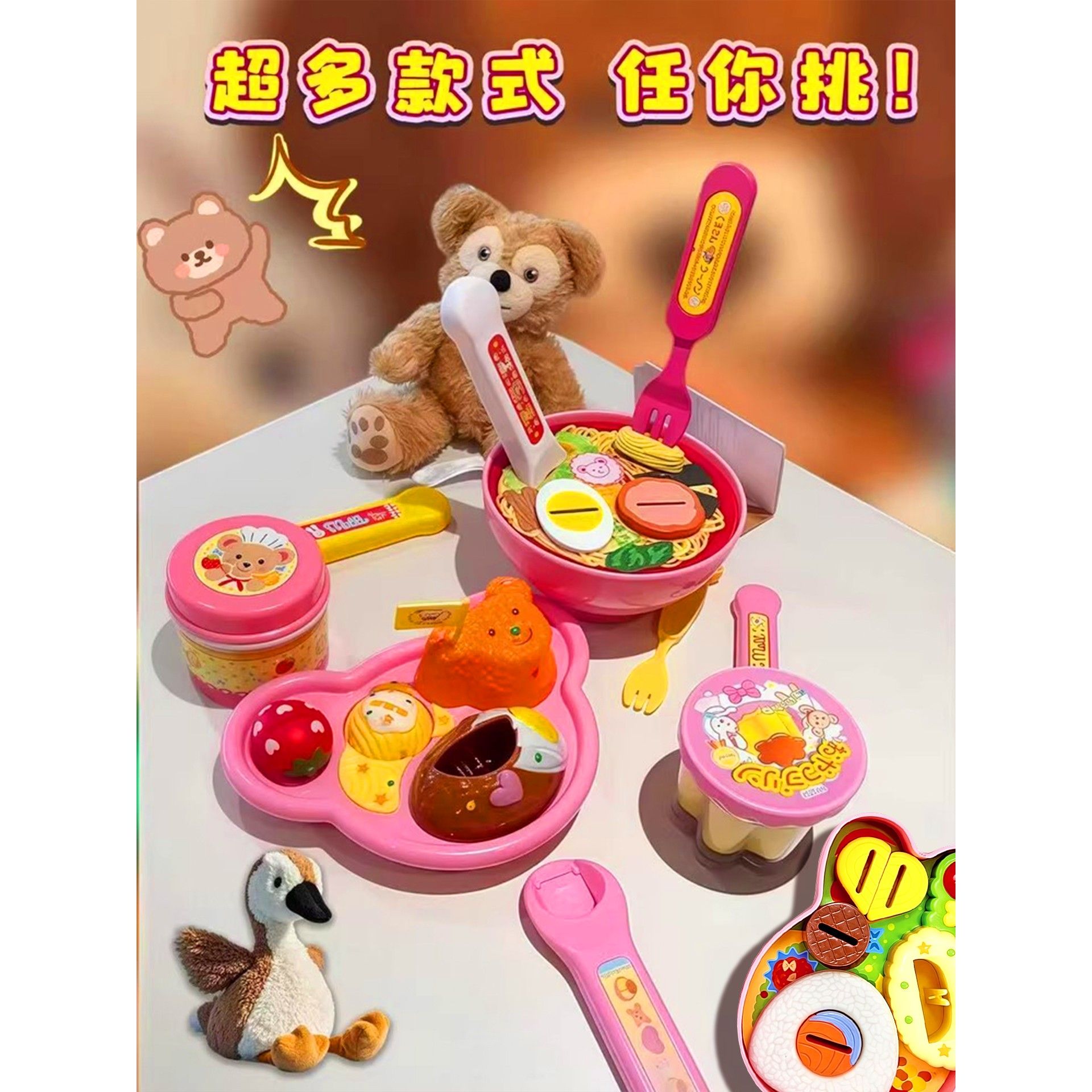 2025网红正版 玩具男女孩小熊饭团 咪露拉面草莓布丁喂食器便当爆款
