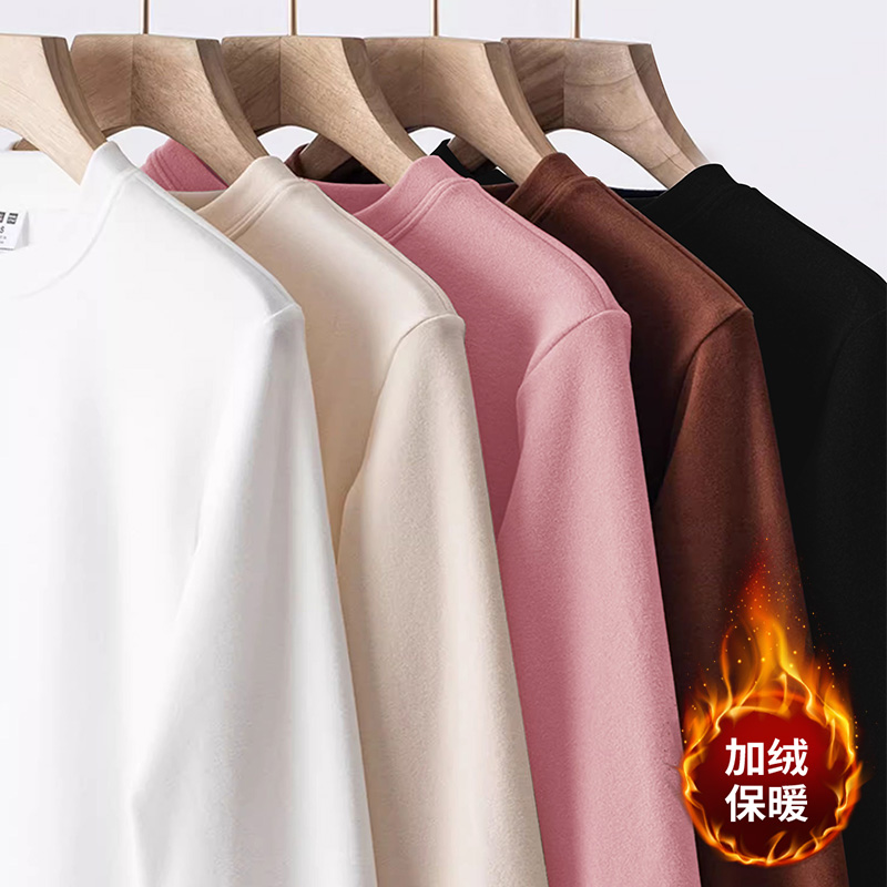 双面磨毛德绒打底衫 内搭保暖上衣 女秋冬加绒加厚保暖内衣圆领修身
