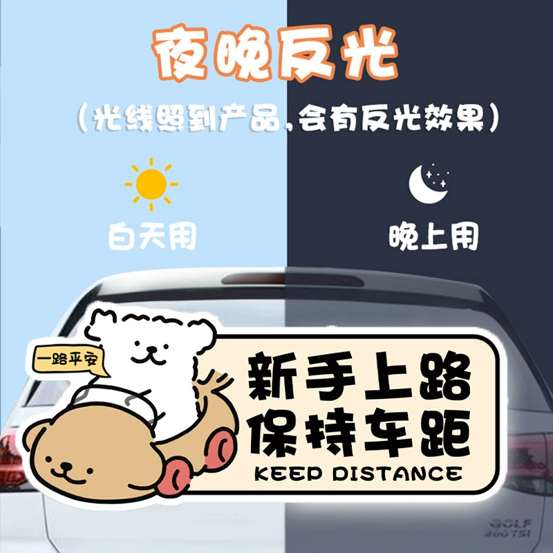 新手上路2025磁性线条狗实习贴创意车贴新款 反光贴汽车贴纸女司机