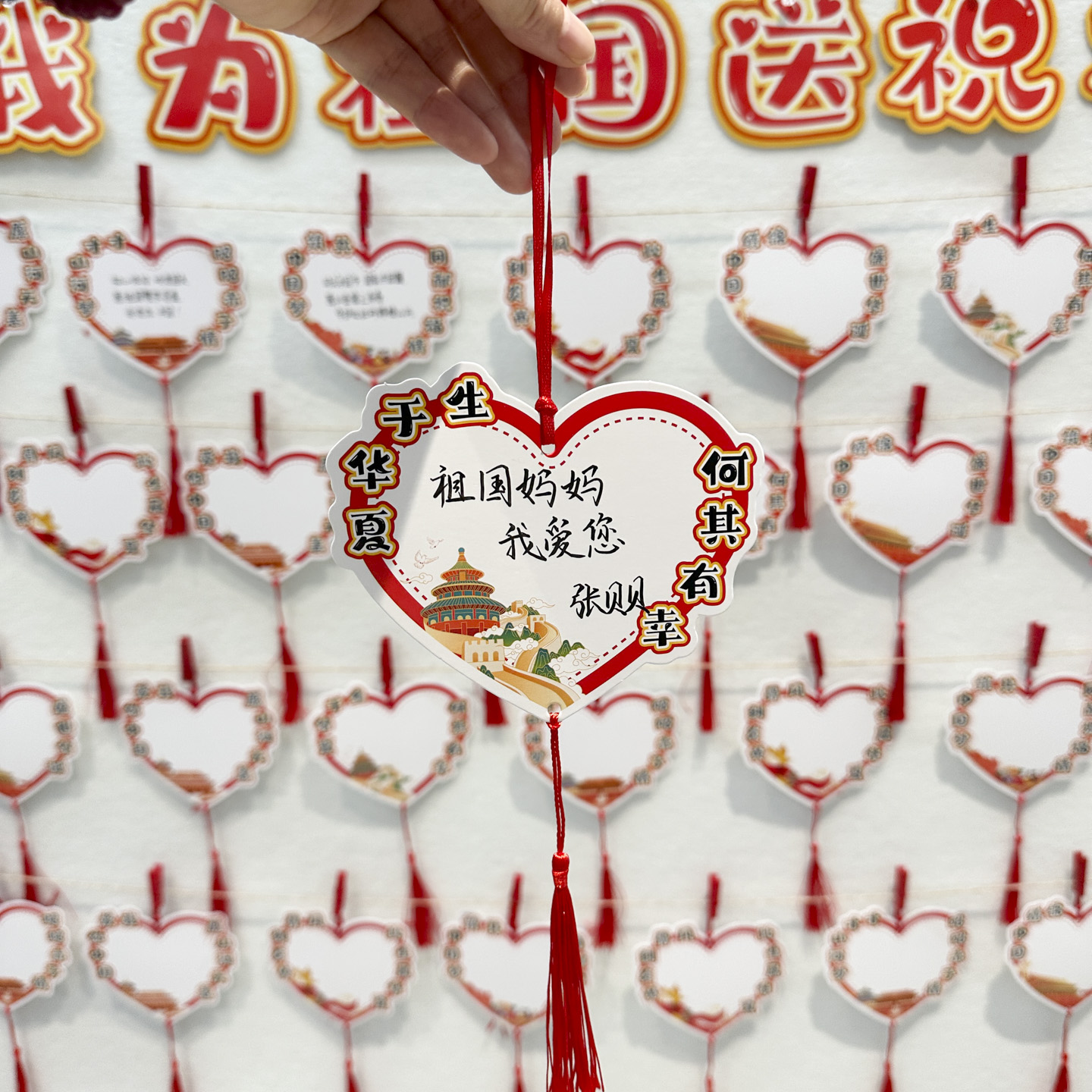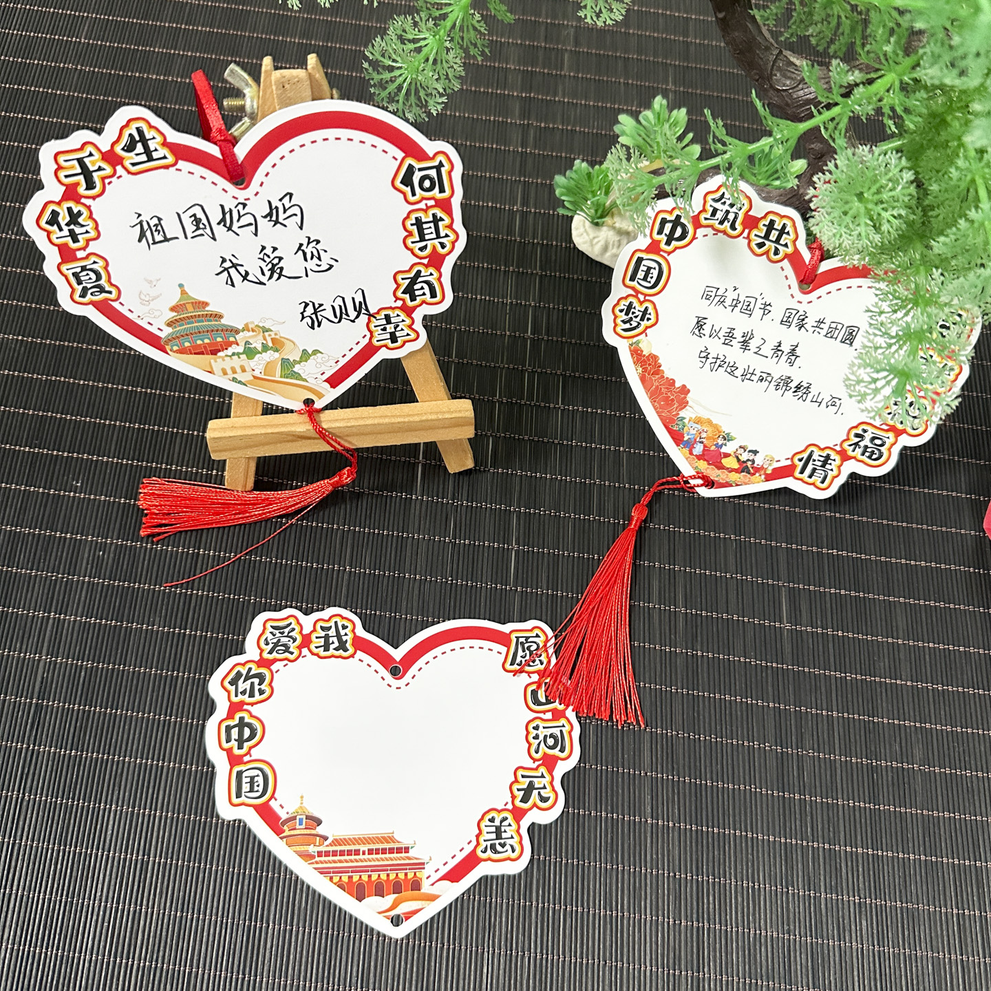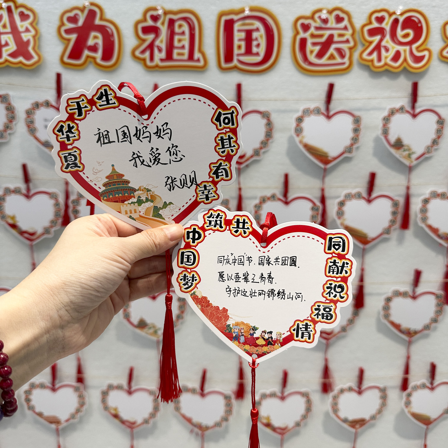 红色爱国主题书签祝福祖国手写空白卡片纸幼儿园环创国庆节文化墙氛围布置装 饰吊卡DIY自制心愿贺卡礼品