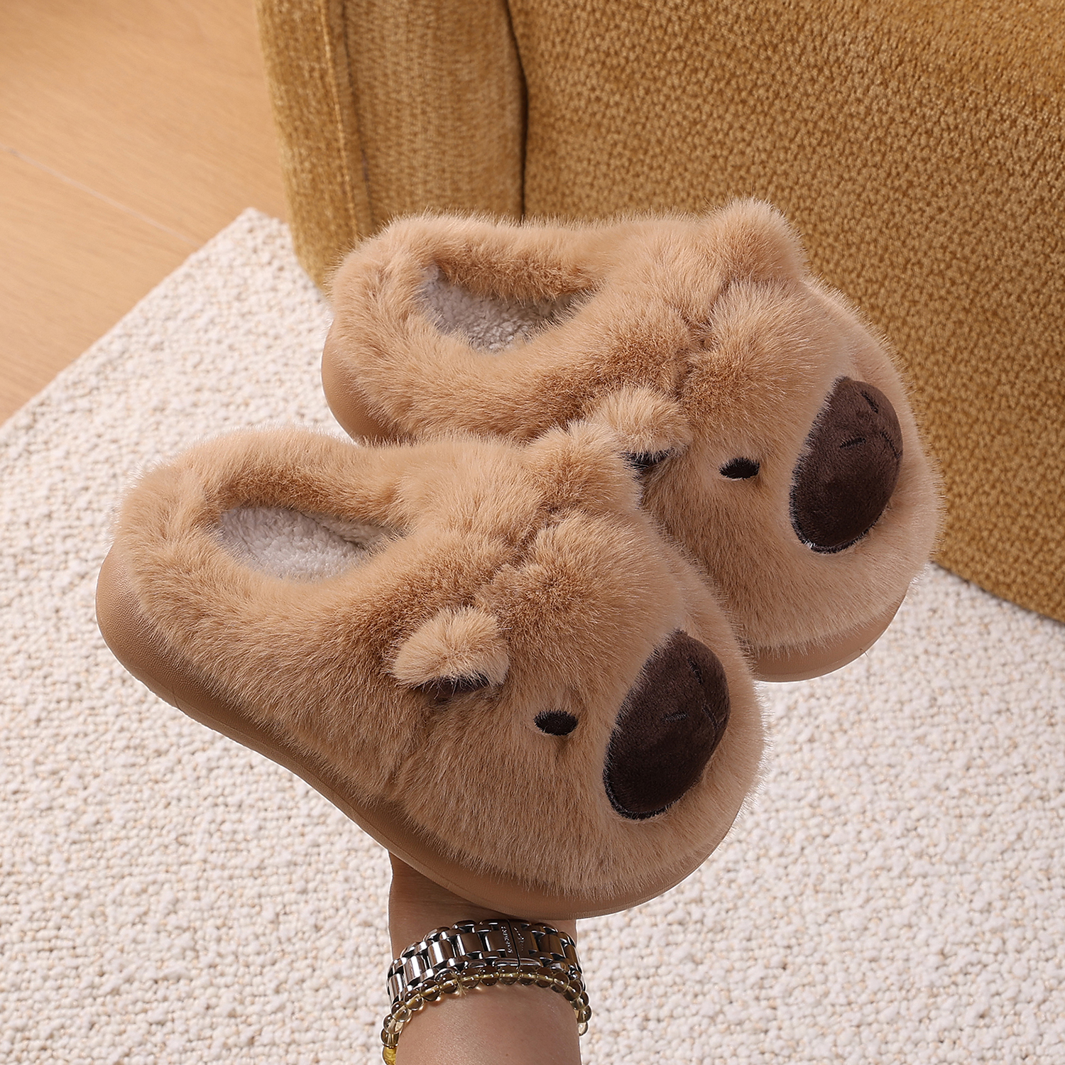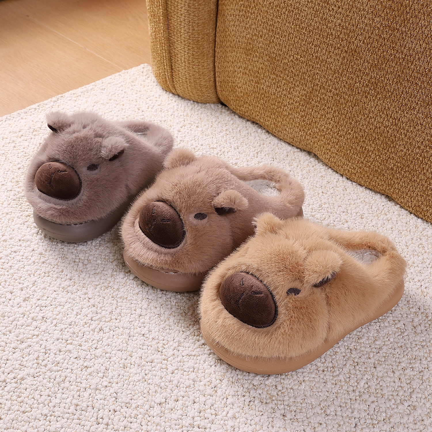 男女宝宝室内防滑中大童保暖毛毛家居鞋 卡皮巴拉儿童棉拖鞋 秋冬季
