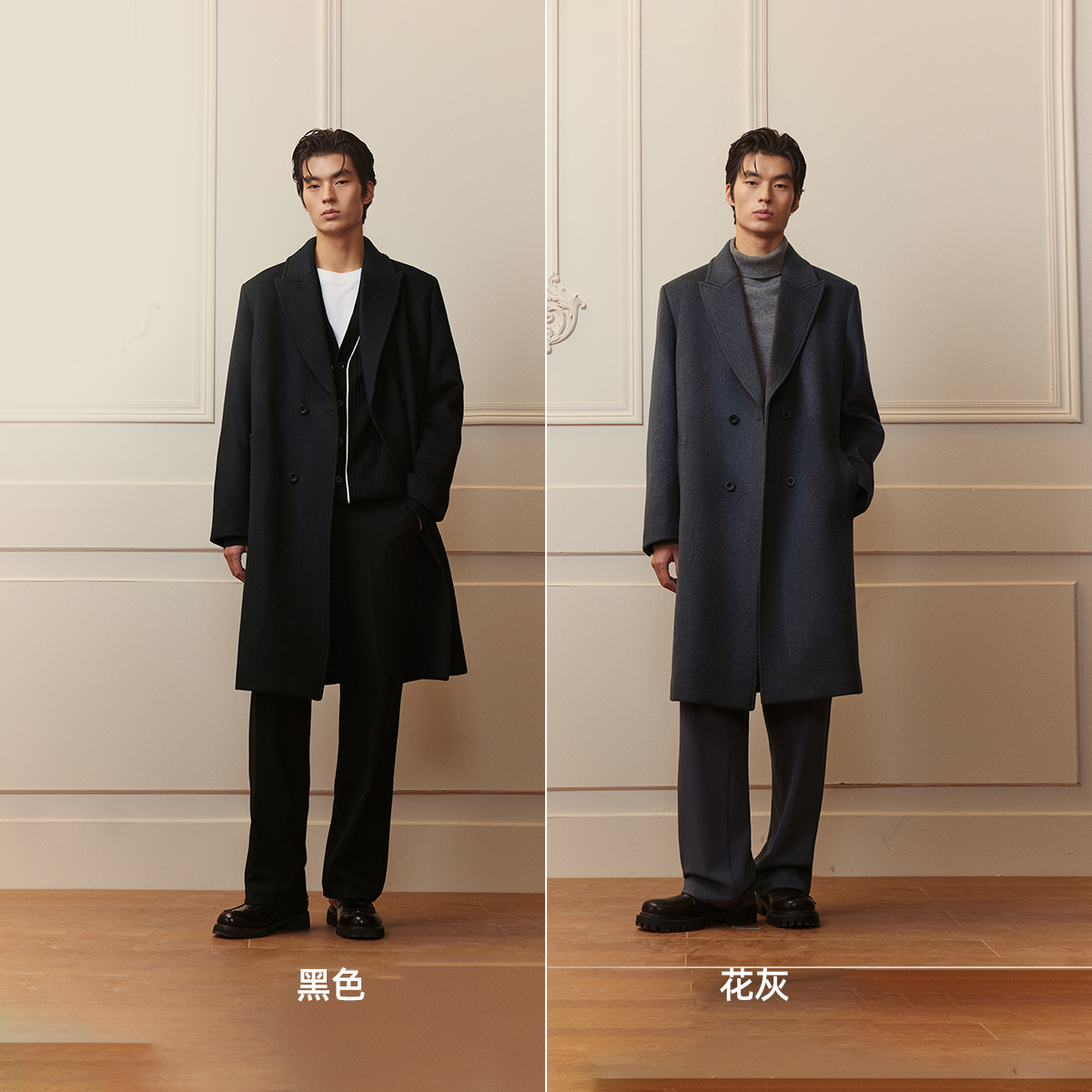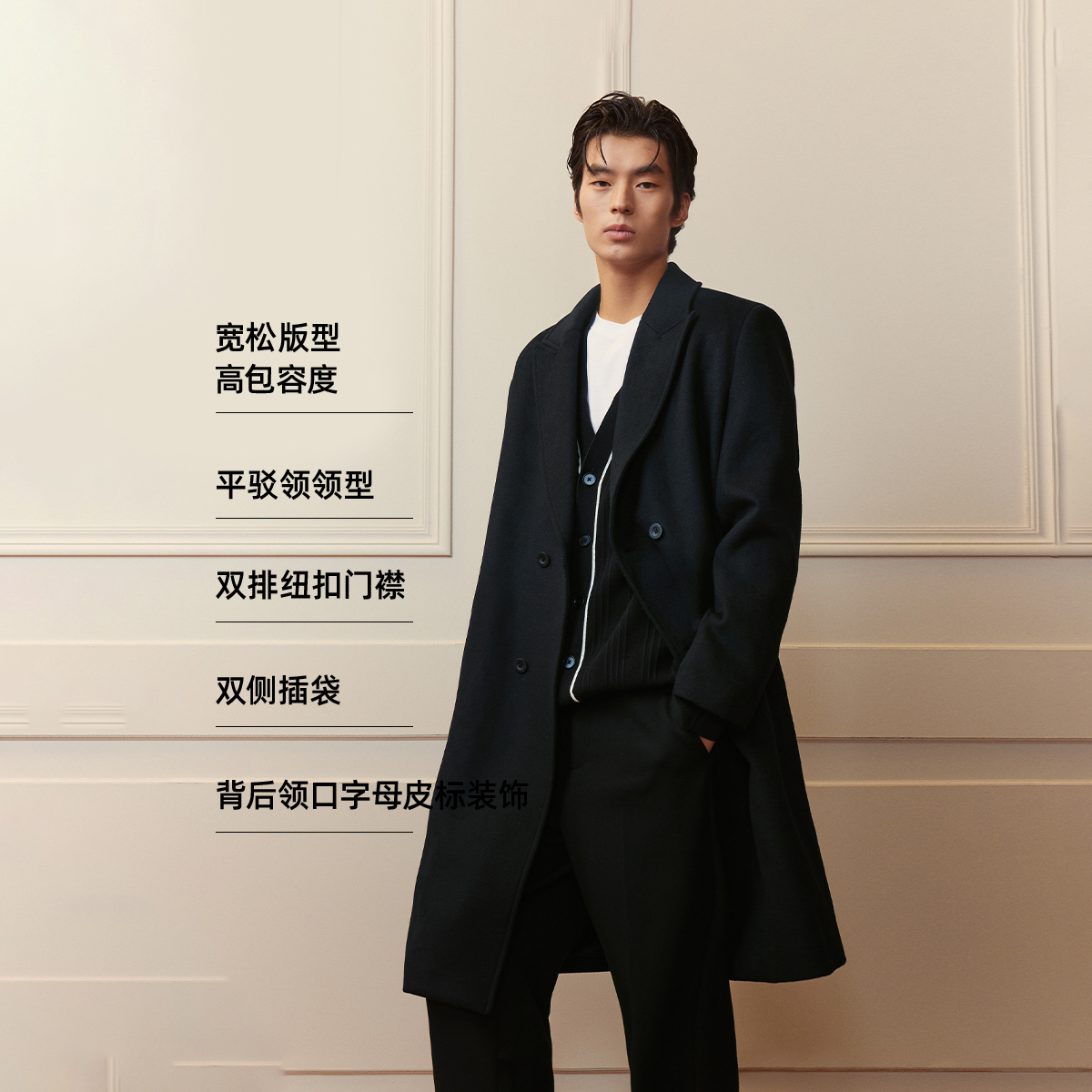 斜纹羊毛 新款 太平鸟男装 毛呢大衣男冬季 宽松外套 中长款