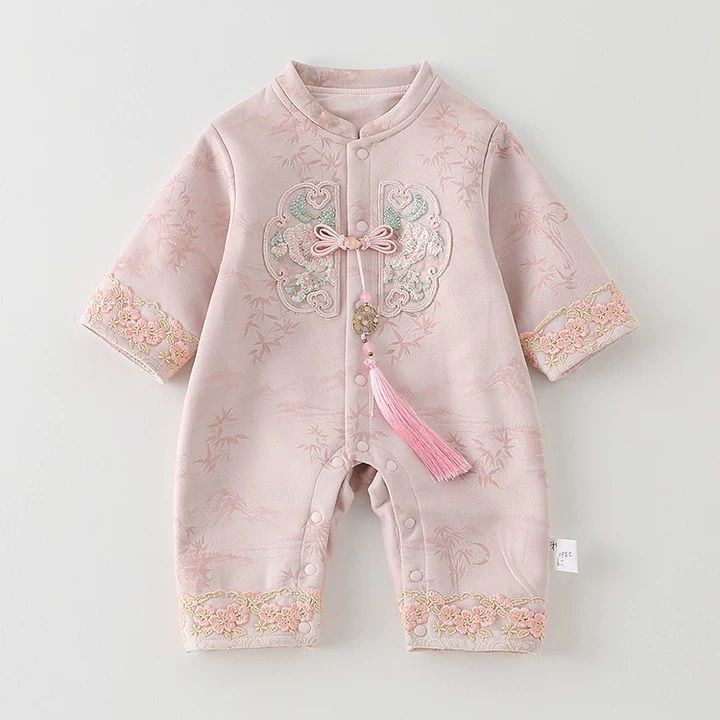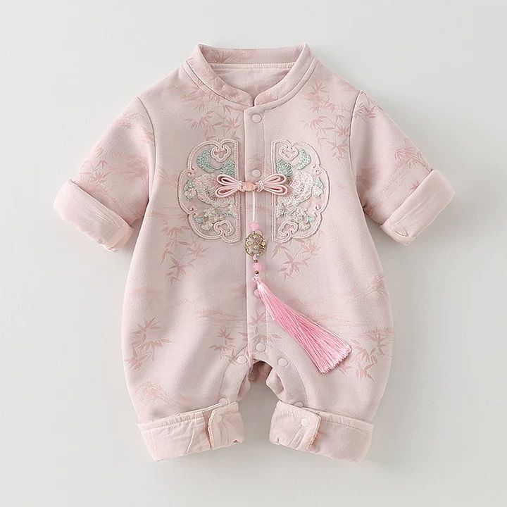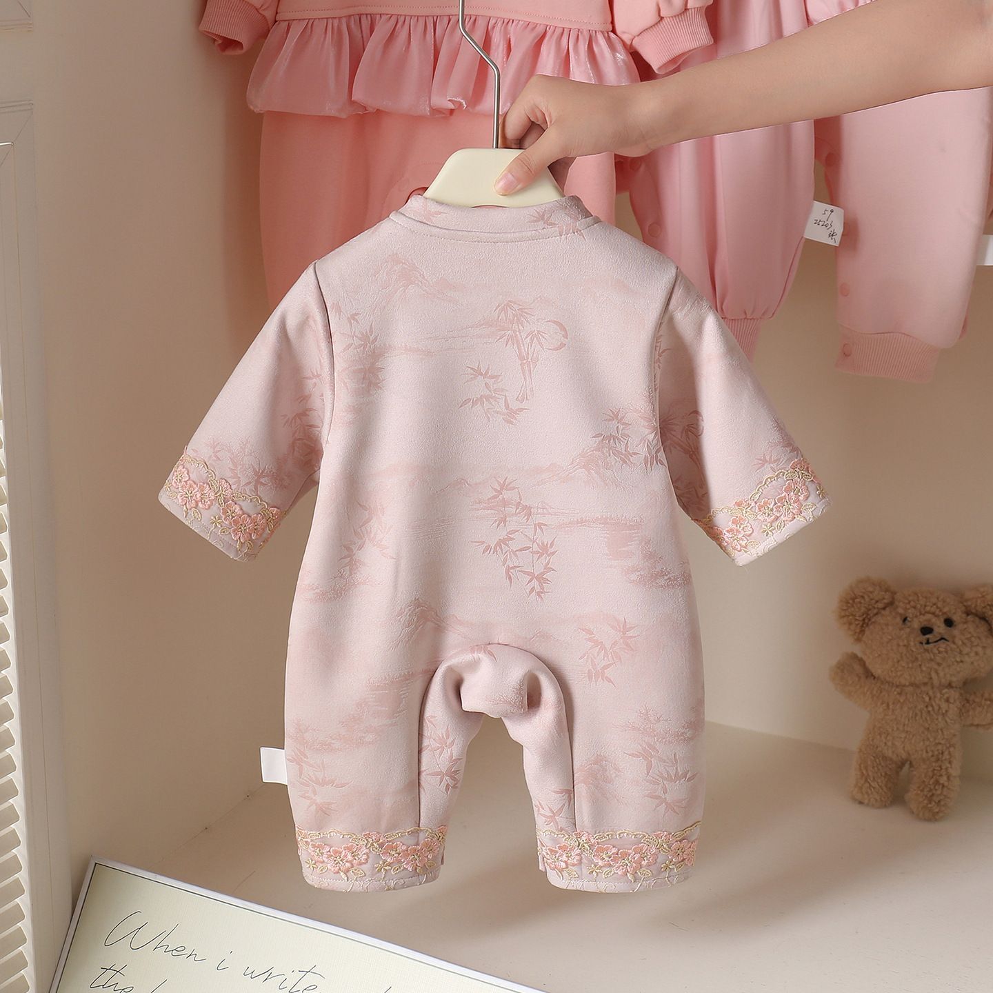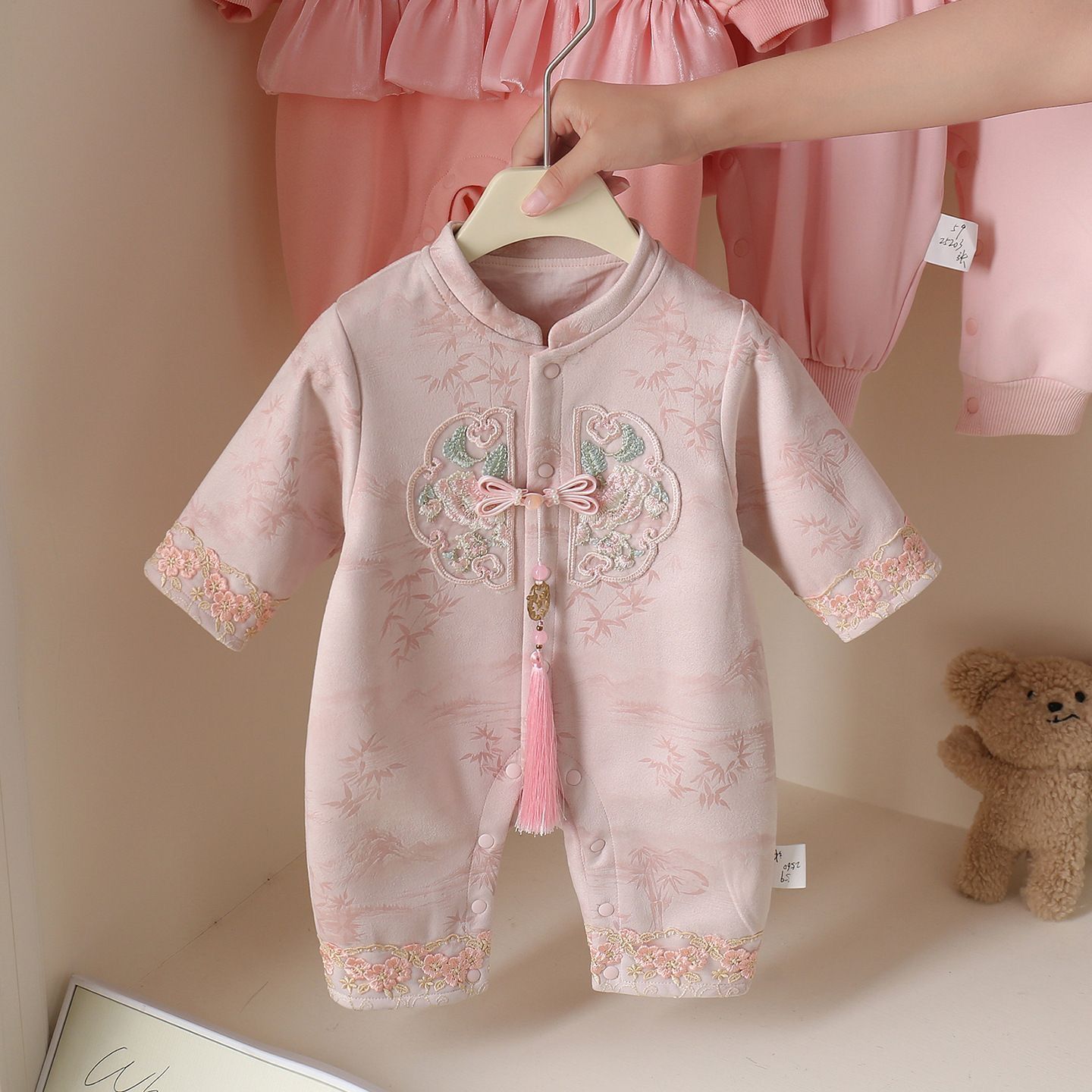 婴儿衣服新中式 国风刺绣连体衣满月百天周岁服女宝宝衣服春秋哈衣