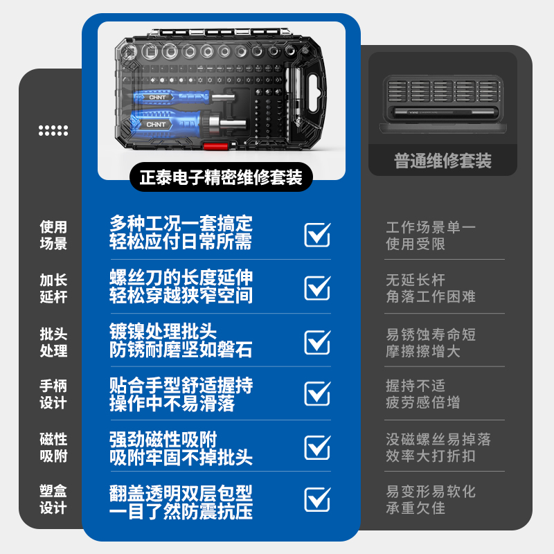 正泰螺丝刀套装 多功能维修工具套筒精密梅花十字一字螺丝批小起子