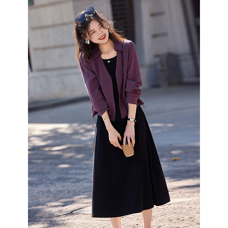 背心连衣裙两件套装 2025年秋季 莱赛尔翻领衬衫 女纯色简约个性 新款