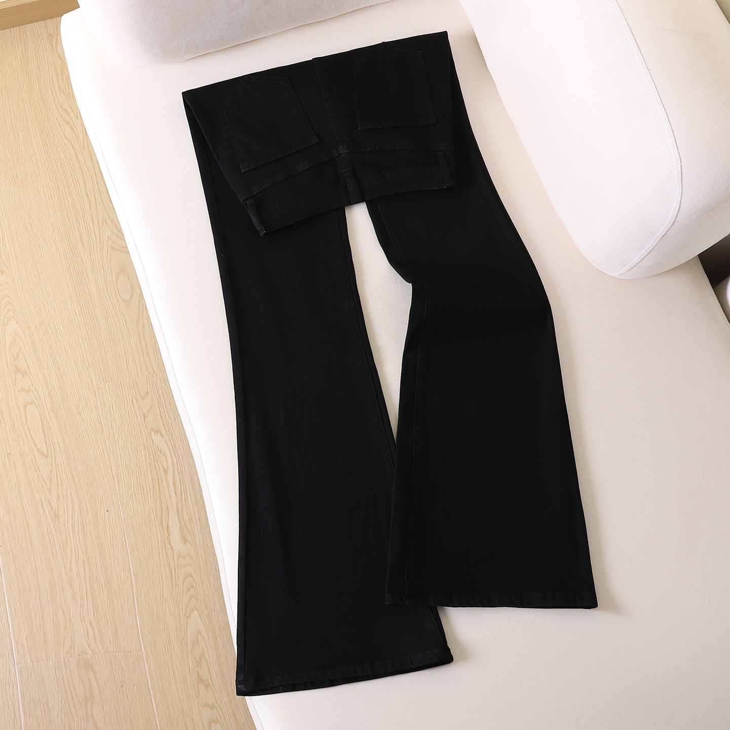 显瘦弹力拖地喇叭裤 黑色不贴腿微喇牛仔裤 高腰修身 新款 女2025秋季