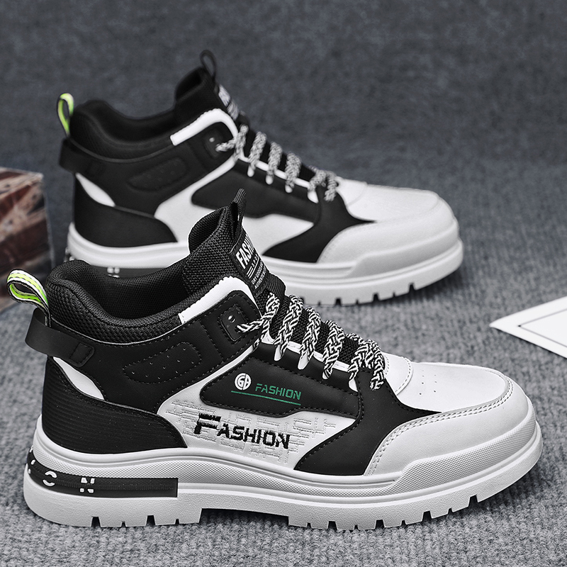 运动鞋 高帮休闲鞋 秋冬新款 子学生厚底男鞋 皮面鞋 征服鸿星尔克板鞋