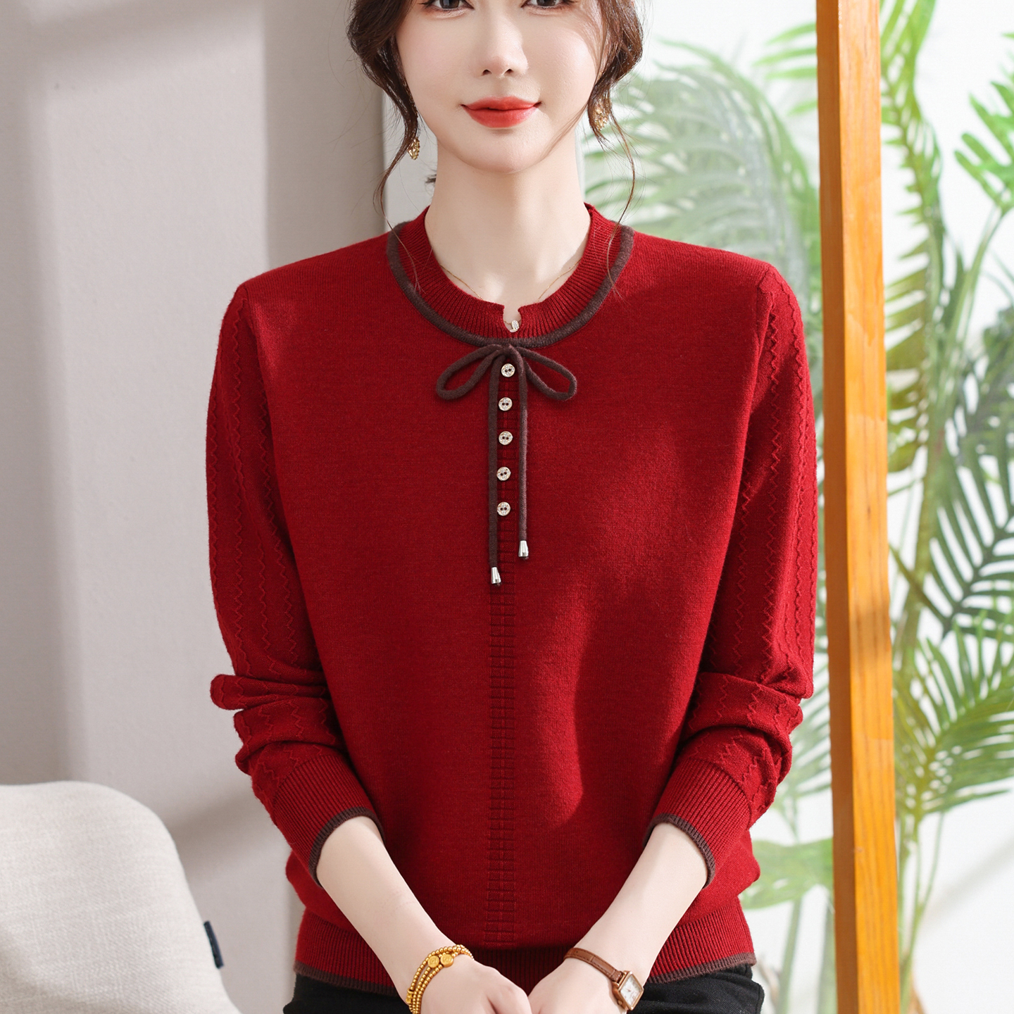 长袖 毛衣中老年秋装 打底衫 2025新款 针织上衣 中年女装 妈妈春秋时尚