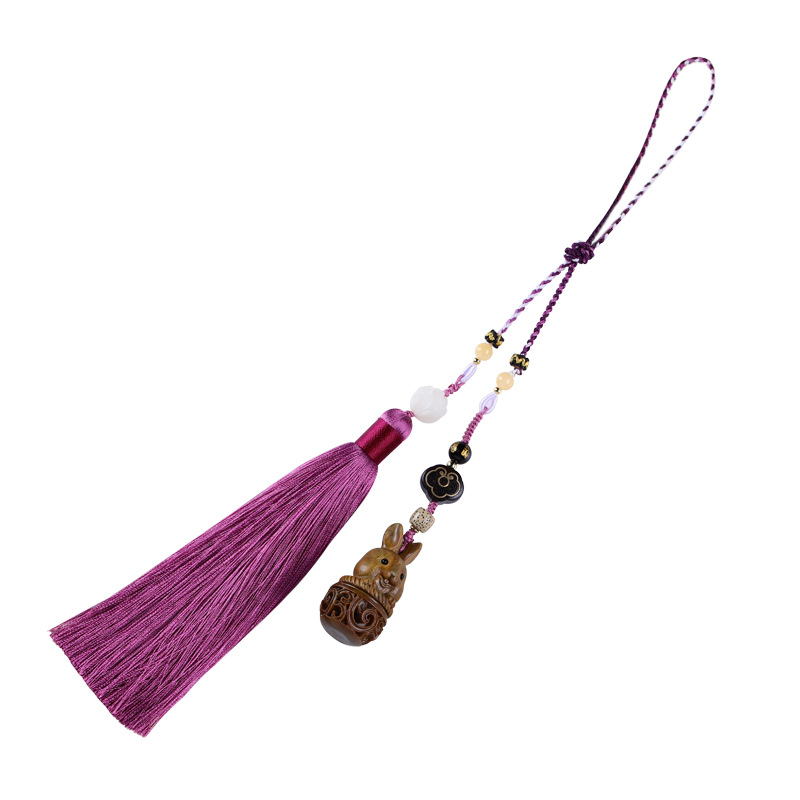绿檀木雕刻兔子香囊车挂流苏吊坠车挂配饰白菩提根莲花吊坠手机链