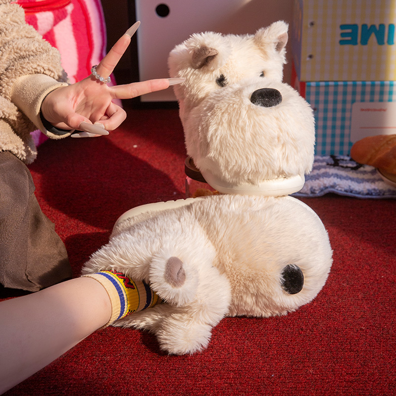 泰迪爱兰棉拖鞋 女士居家可爱小白狗毛毛绒茸保暖加厚底外穿男棉鞋