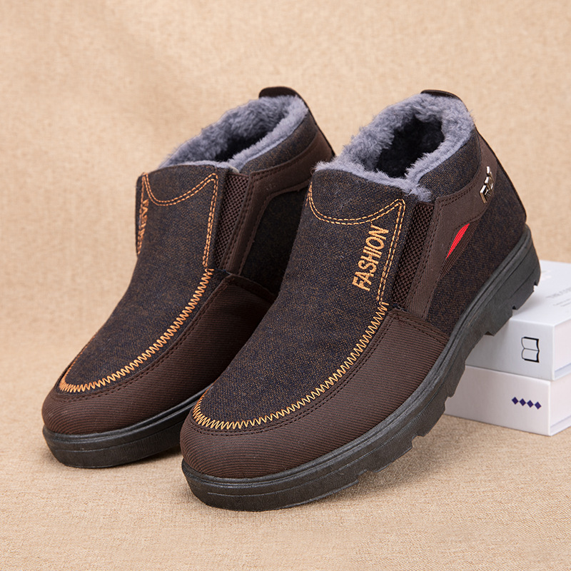 加绒加厚老北京棉靴外穿厚底棉鞋 老人防滑棉拖鞋 男士 2025新款 冬季