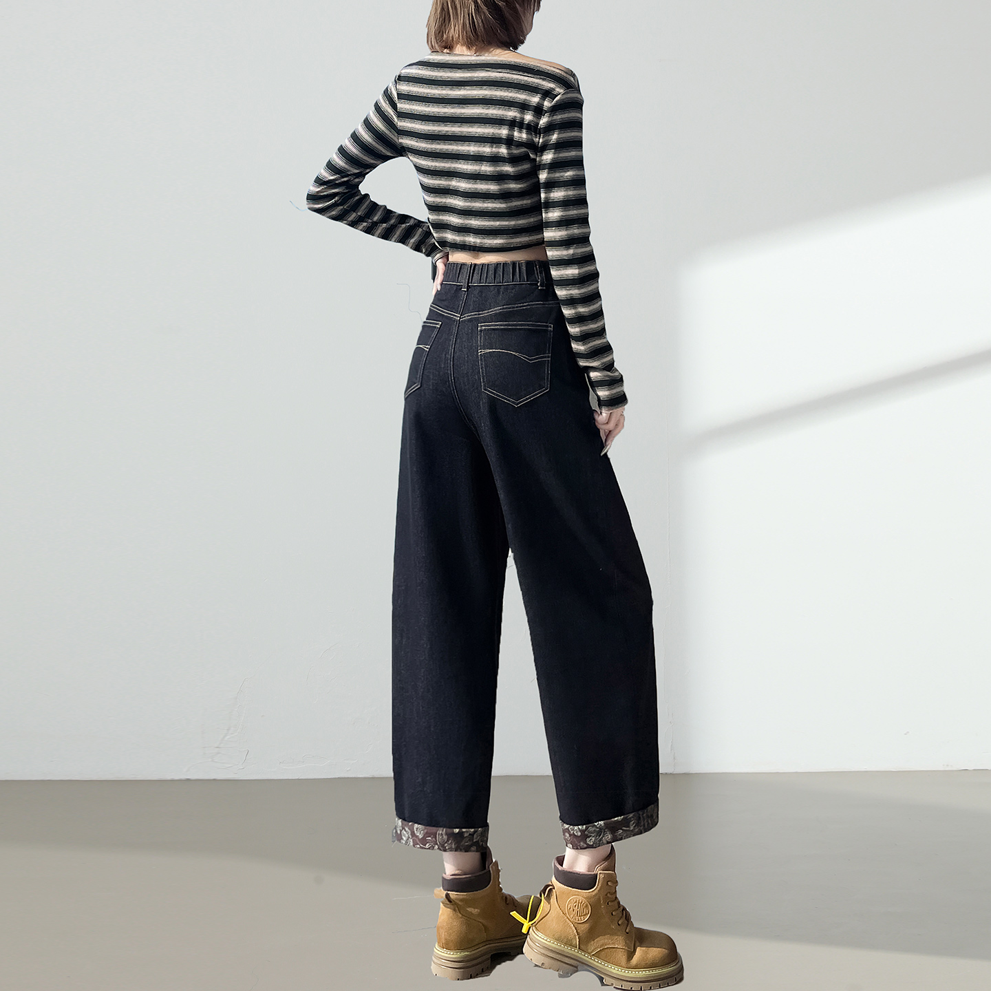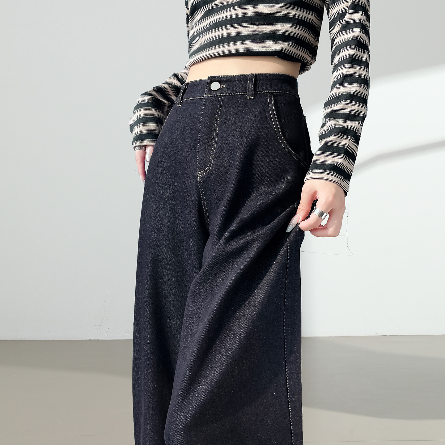高腰宽松bf慵懒风直筒裤 2025新款 子 女秋季 韩妁雅复古阔腿牛仔裤