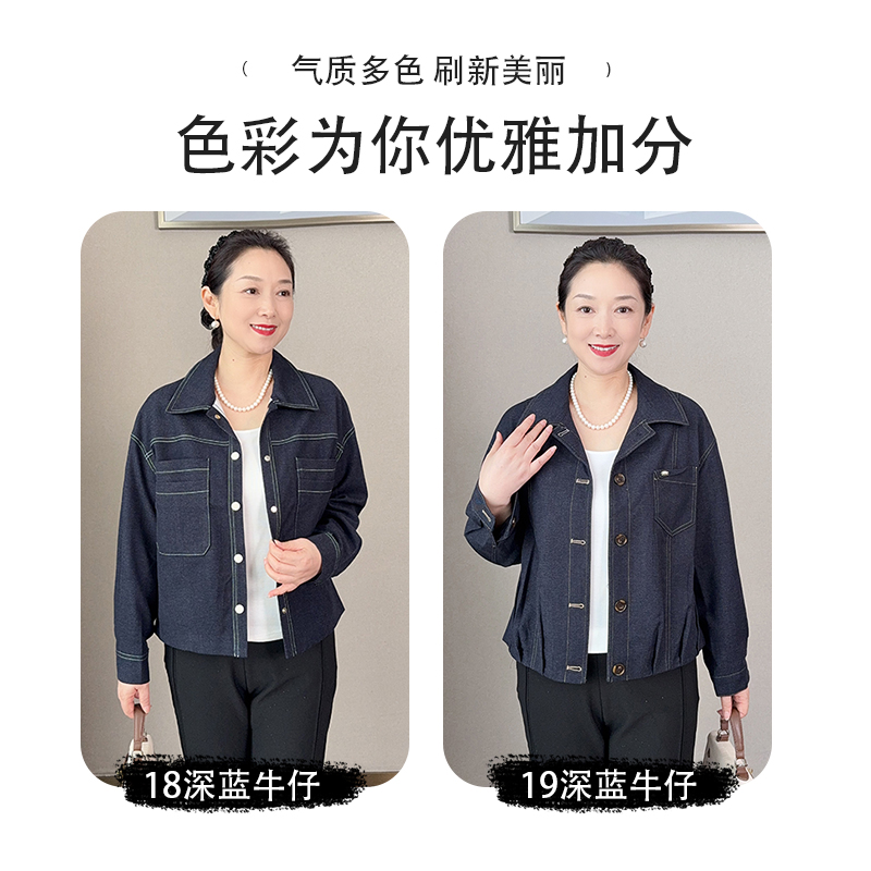 中年女上衣中老年夹克衫 朵莹小个子妈妈秋装 洋气牛仔外套春秋新款
