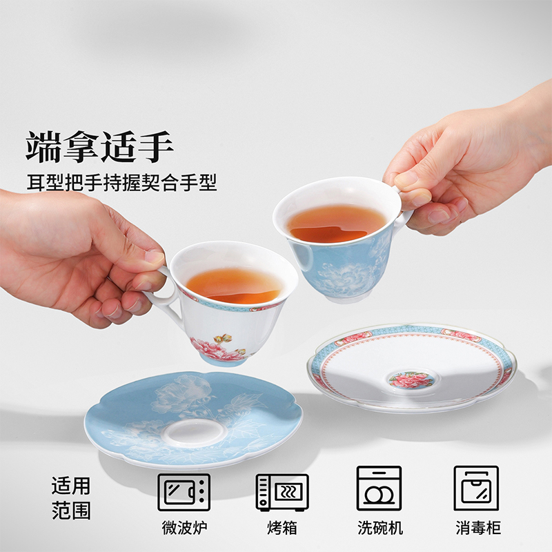 景德镇官方陶瓷中国色茶具咖啡杯碟套装 精致马克杯情侣对杯结婚礼