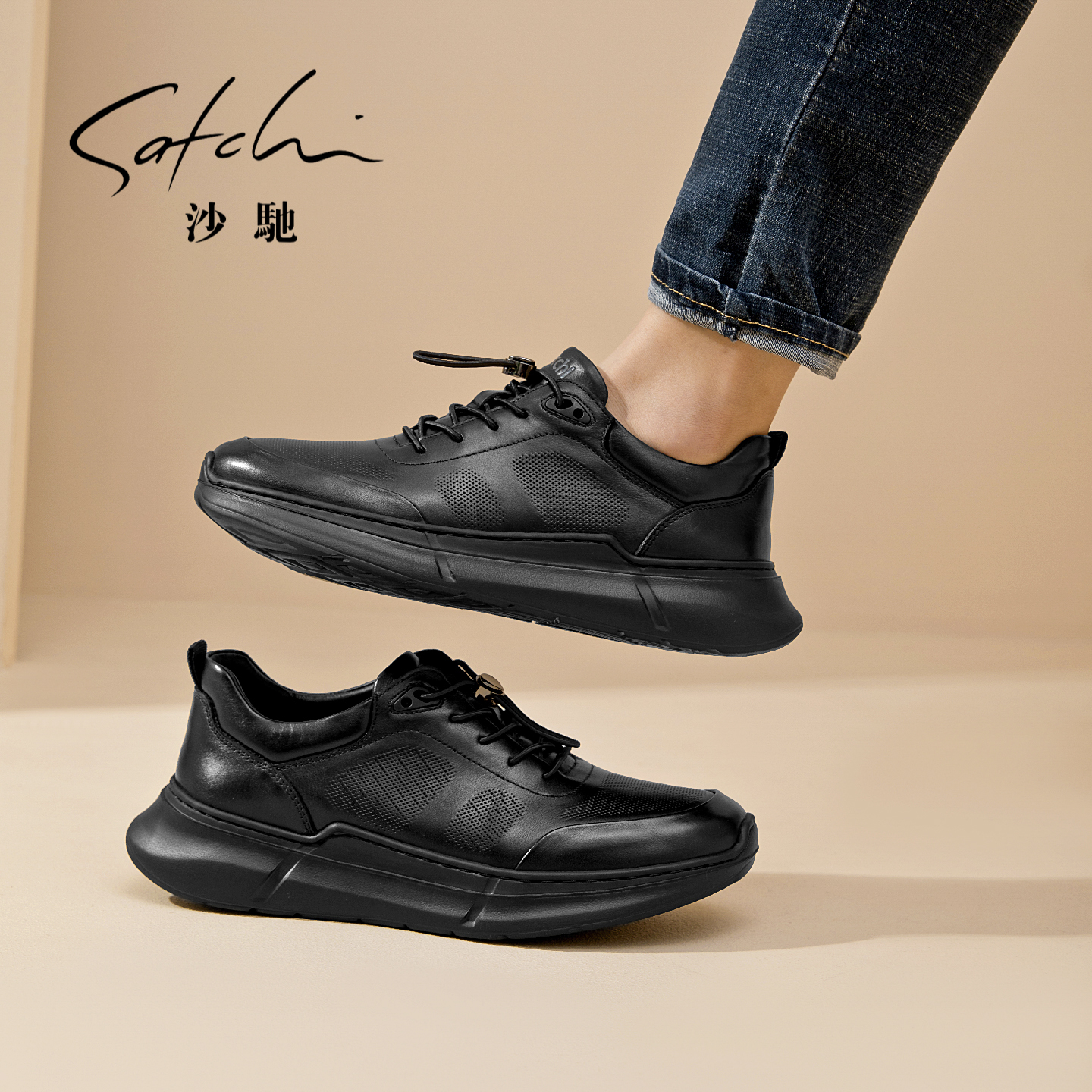 秋季 健康步态健来士男鞋 休闲皮鞋 轻便商务牛皮运动厚底 男士 沙驰