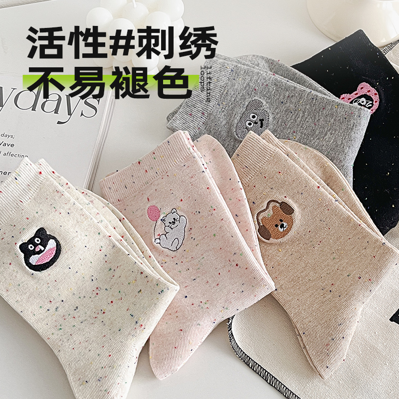 爆款 中筒纯棉防臭ins潮全棉初中生可爱2025新款 春秋夏季 袜子女款