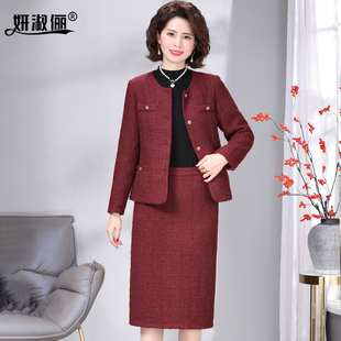 妈妈秋季 半裙2025平时可穿喜婆婆婚宴礼服外套 气质优雅小香风套装