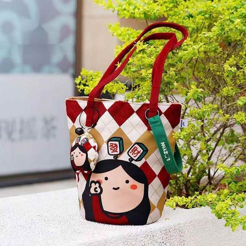 新款 手提包青年肩带可爱潮人水桶单肩休闲大容