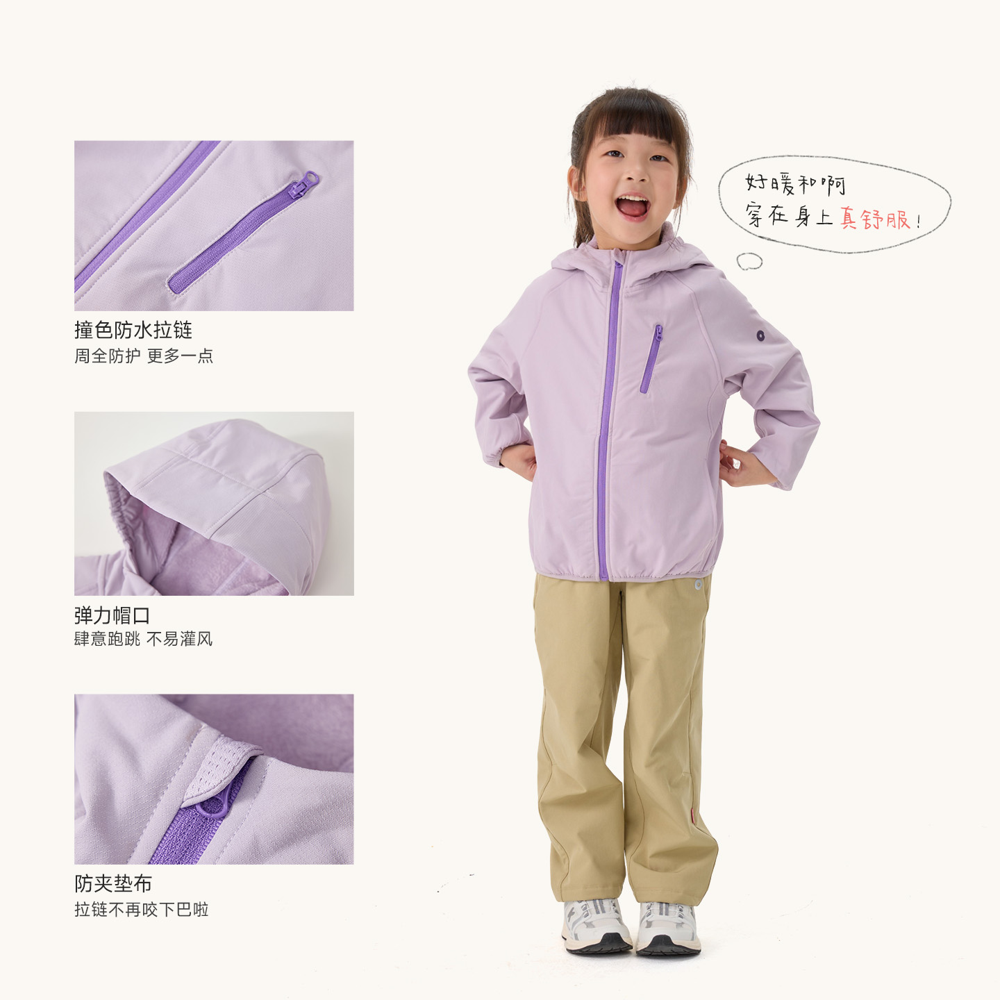 Q21一体绒弹弹软壳儿童连帽外套25秋季 防风防泼水休闲上衣 新款