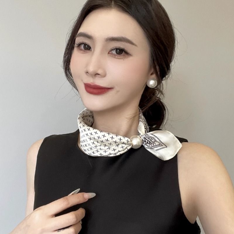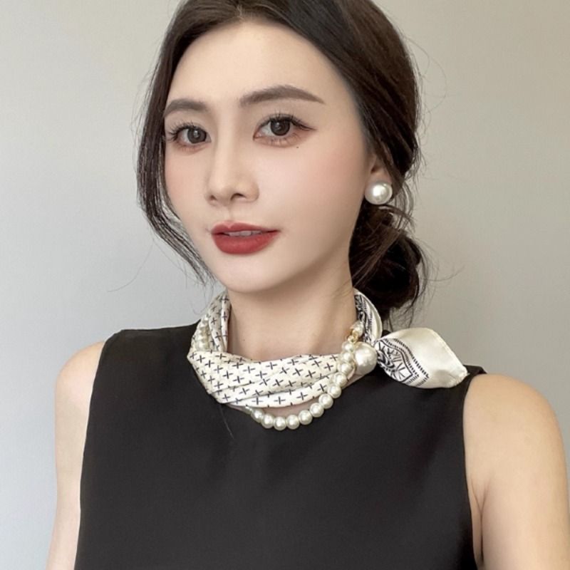 百搭女款 春秋高级领巾时尚 高级感磁吸扣 珍珠项链丝巾法式 2025新款