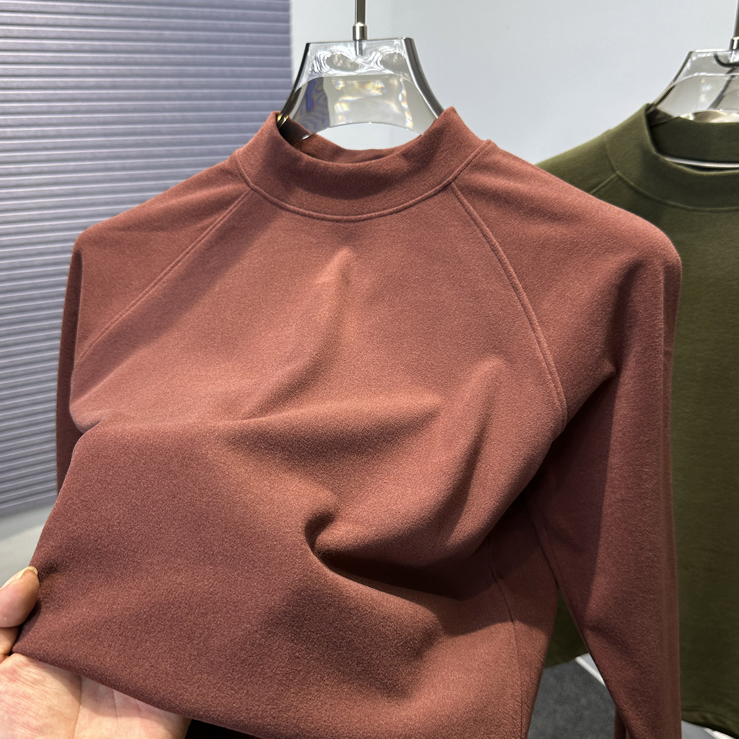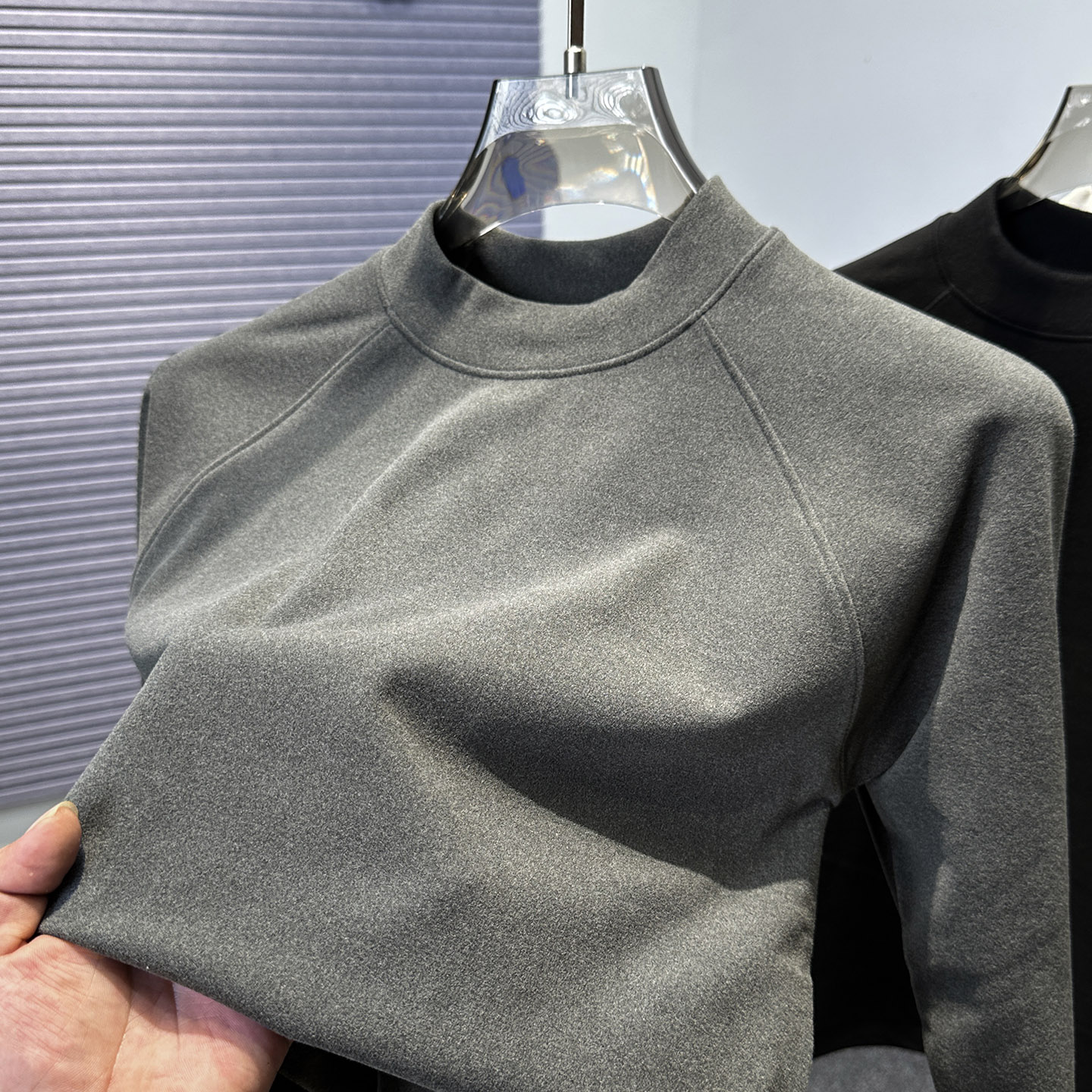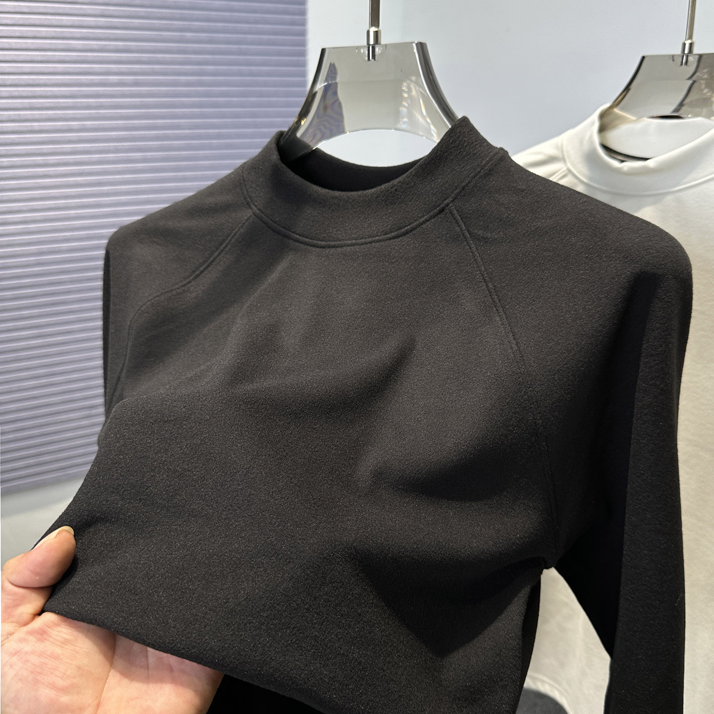 T恤男插肩磨毛卫衣 保暖中领内搭长袖 半高领双面绒打底衫 男秋冬季