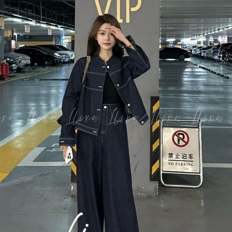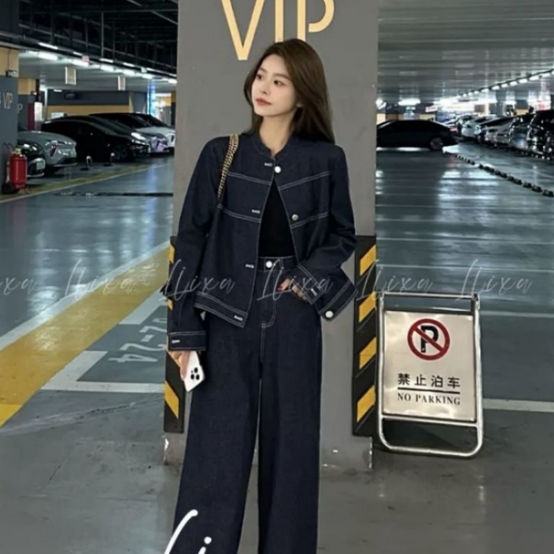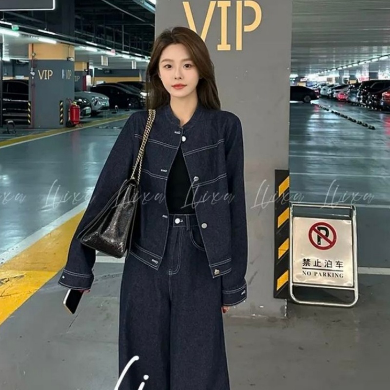 牛仔套装 阔腿休闲裤 气质显瘦外套时尚 2025早春新款