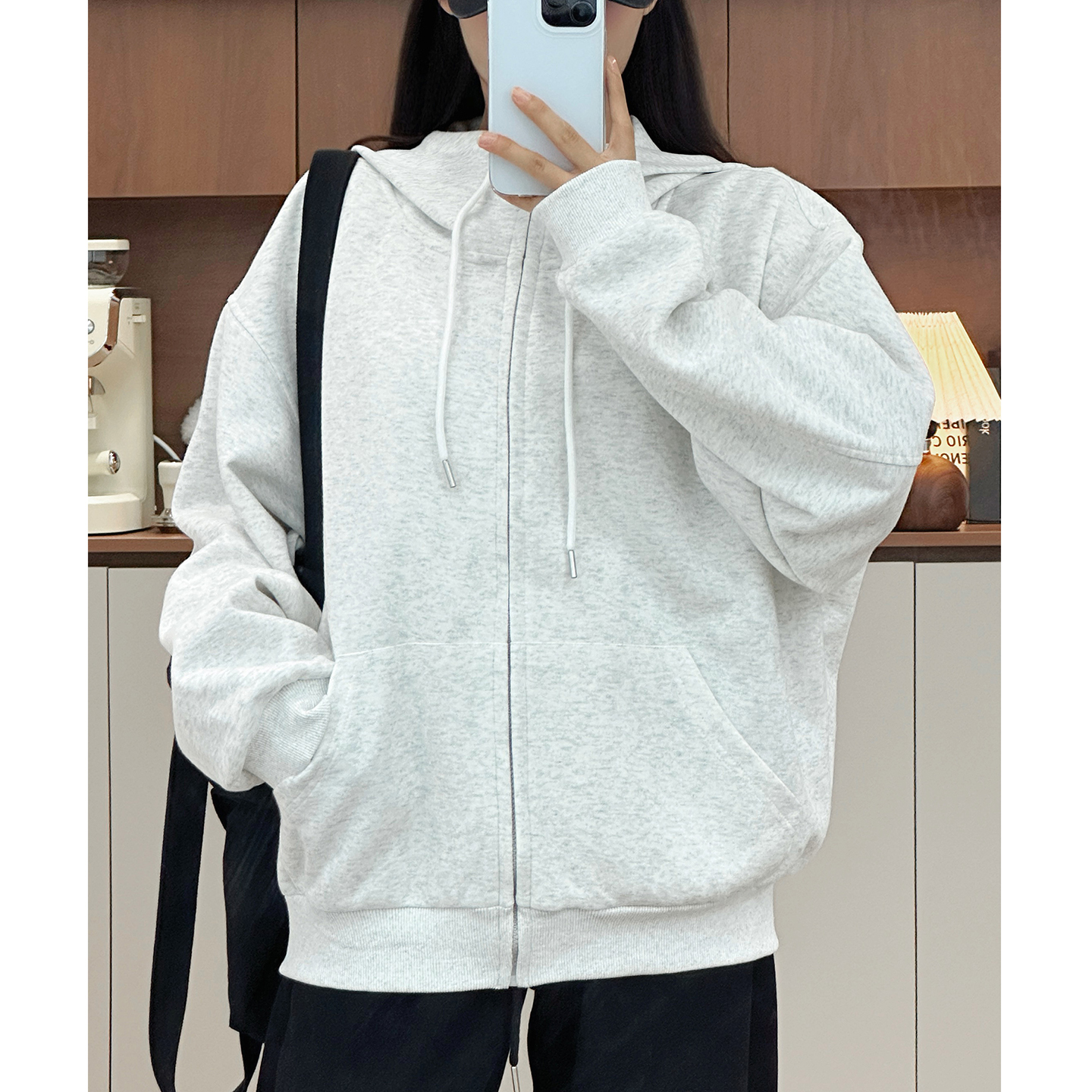 灰色外套连帽卫衣女春秋2025新款 上衣 宽松显瘦拉链慵懒风休闲开衫