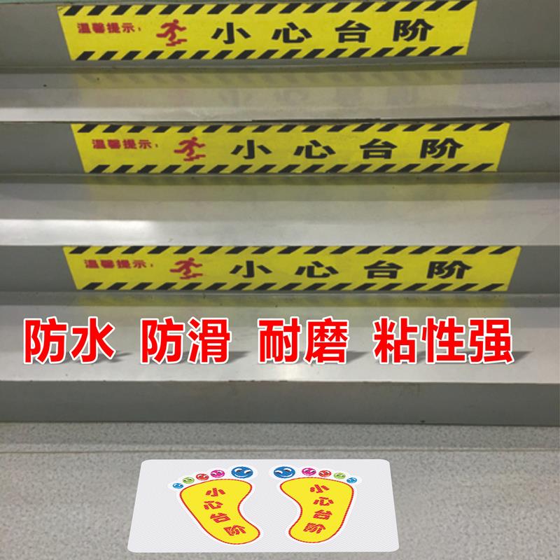 小心台阶地滑地贴注意安全警示贴楼梯温馨提示牌耐磨标识当心碰头玻璃标语洗手间指示牌防水防滑创意贴纸定制