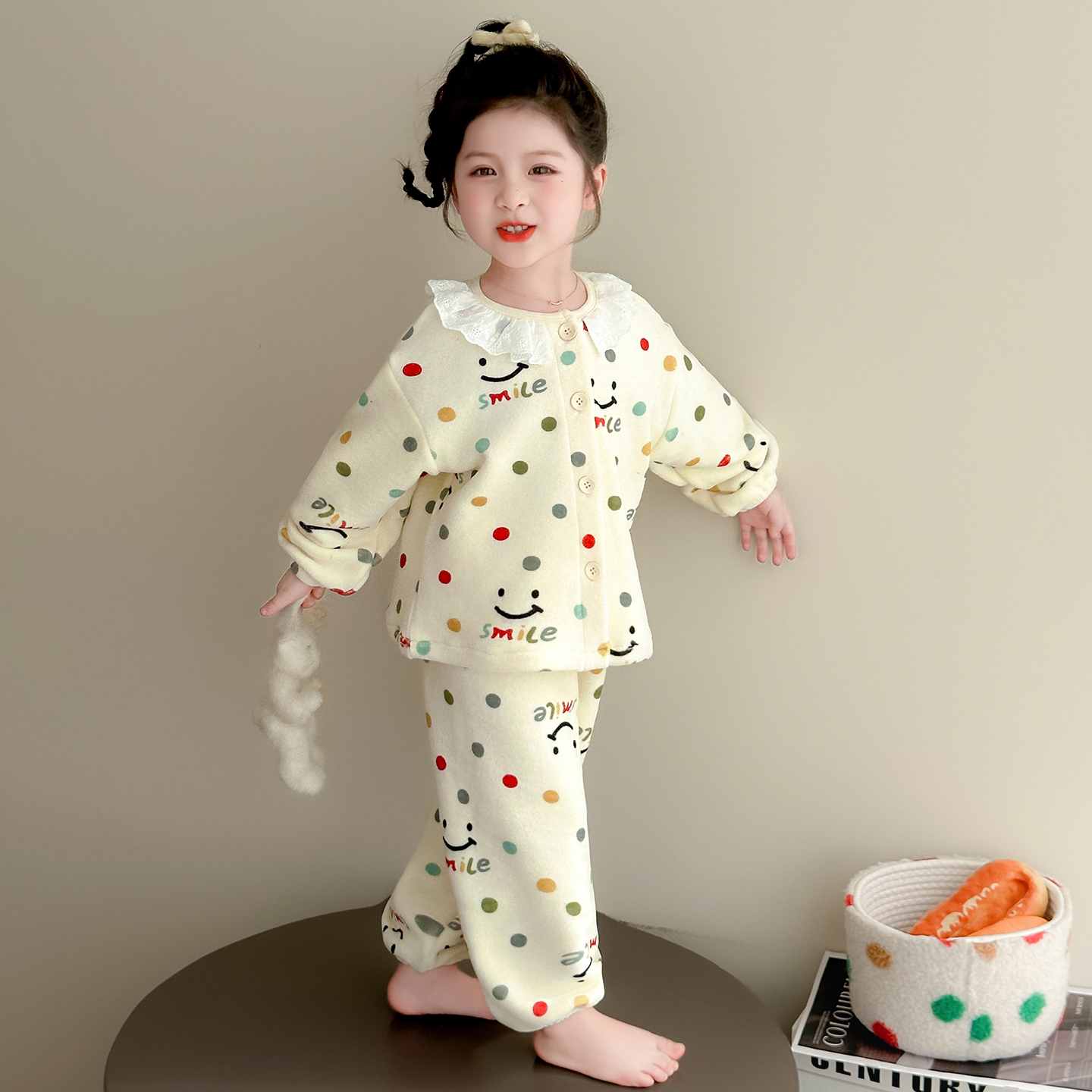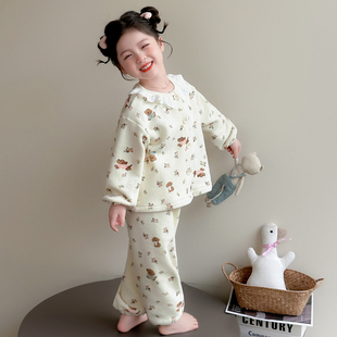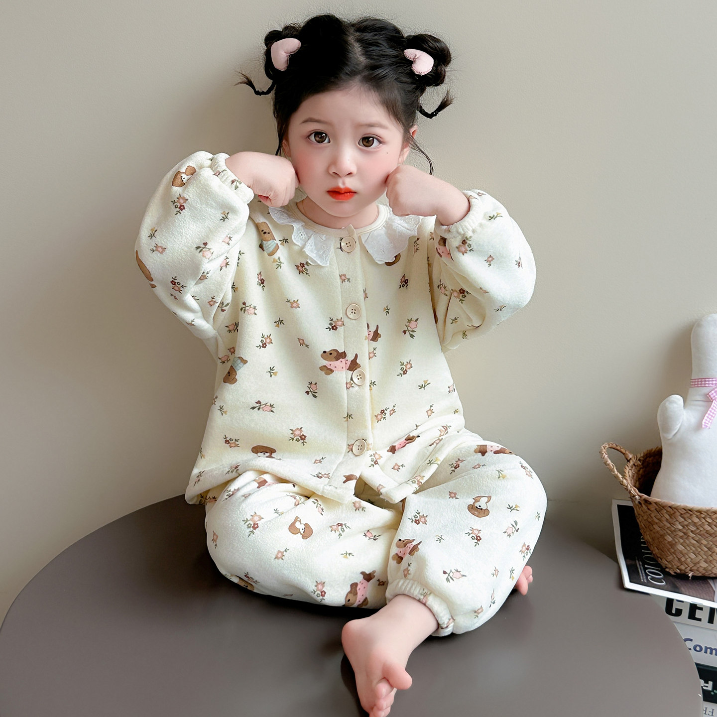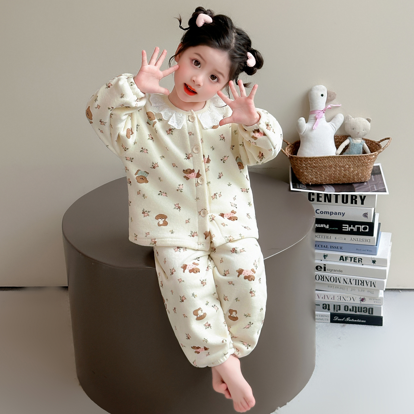 女童睡衣套装 秋冬奥粒绒女宝宝休闲家居服保暖法兰绒两件 2025新款