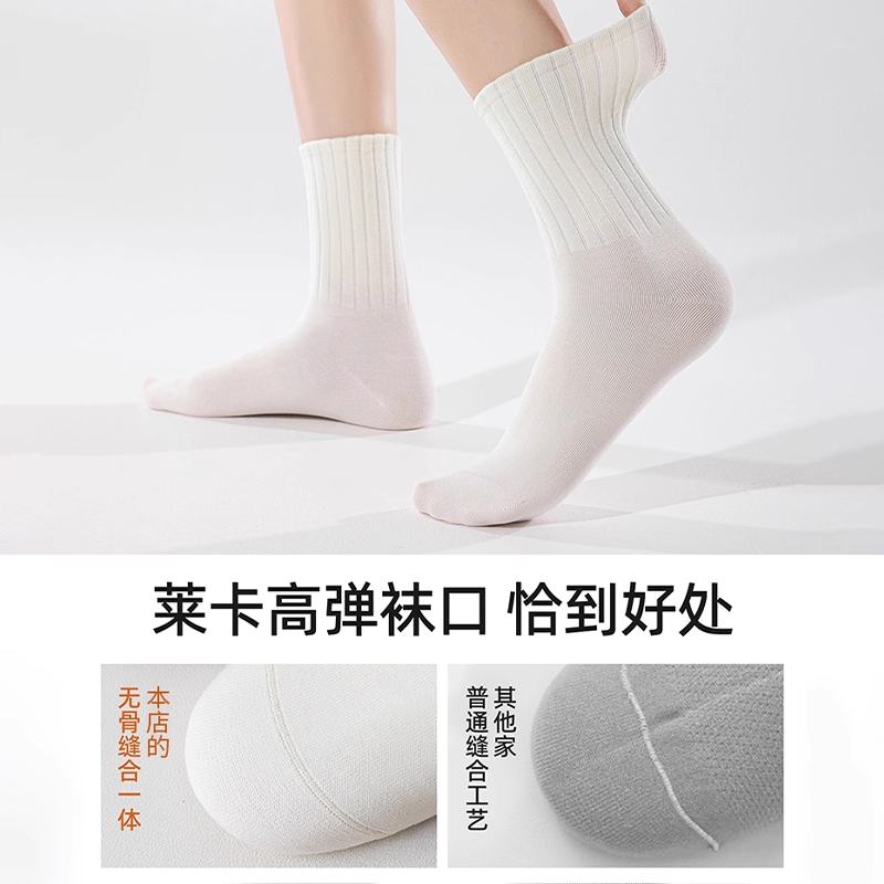 月子无骨高筒抗菌防臭长筒袜 中筒袜白色春秋季 袜子女款 纯棉秋冬季
