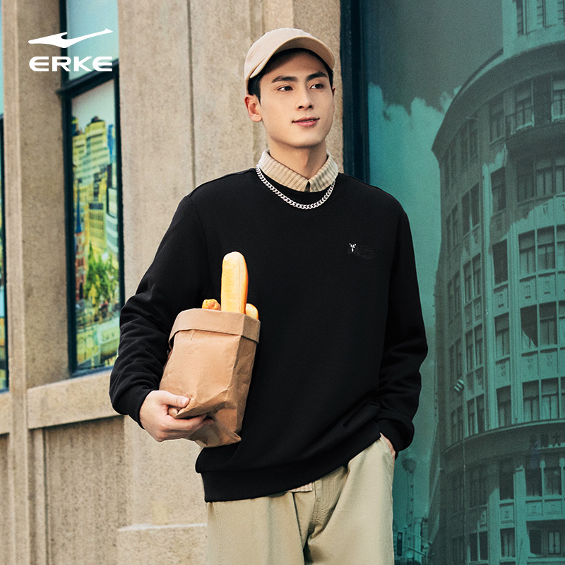 宽松针织运动上衣简约男装 加绒圆领套头衫 卫衣男秋季 安踏休闲长袖