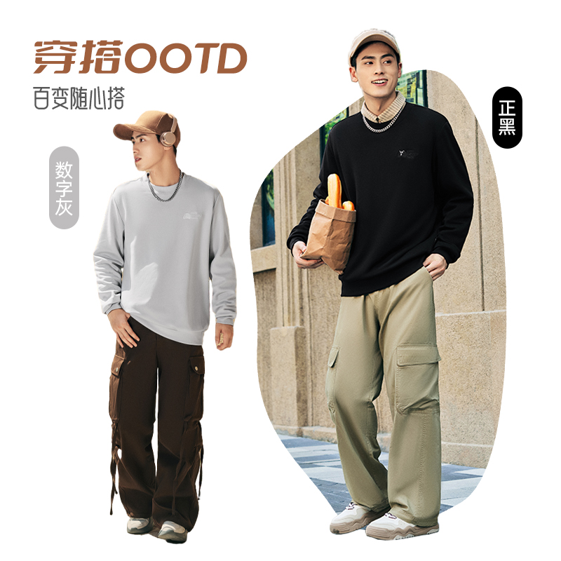 男装 特步卫衣男2025秋季 潮流圆领套头运动套头衫 加绒保暖时尚 新款