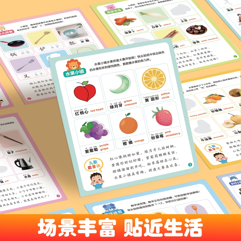 6岁十大认知主题 幼儿早教认知启蒙贴纸书1 益智启蒙玩具贴贴画全脑逻辑思维游戏训练粘贴纸识字数学早教趣味游戏书籍 抖音同款
