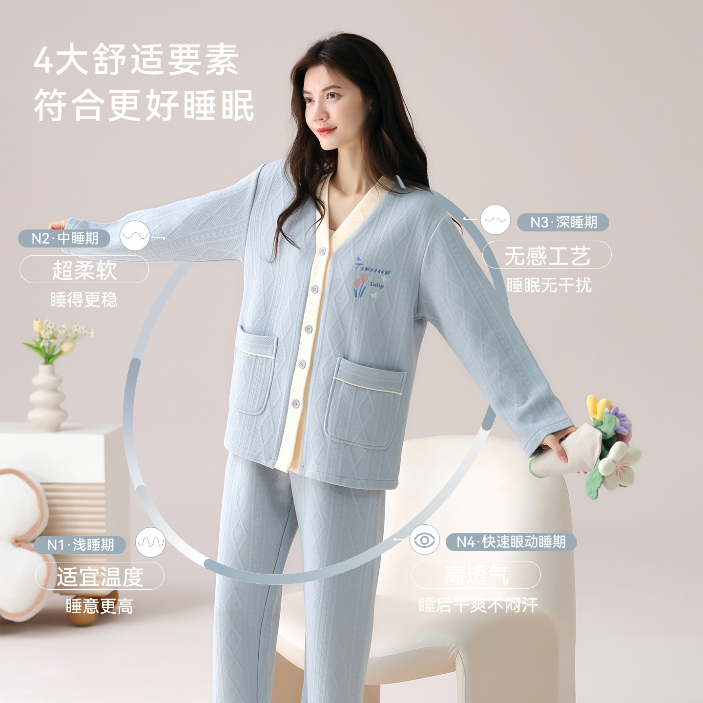 纯棉长袖 家居服套装 春秋款 夏2025年新款 冬 全棉秋冬开衫 睡衣女秋季