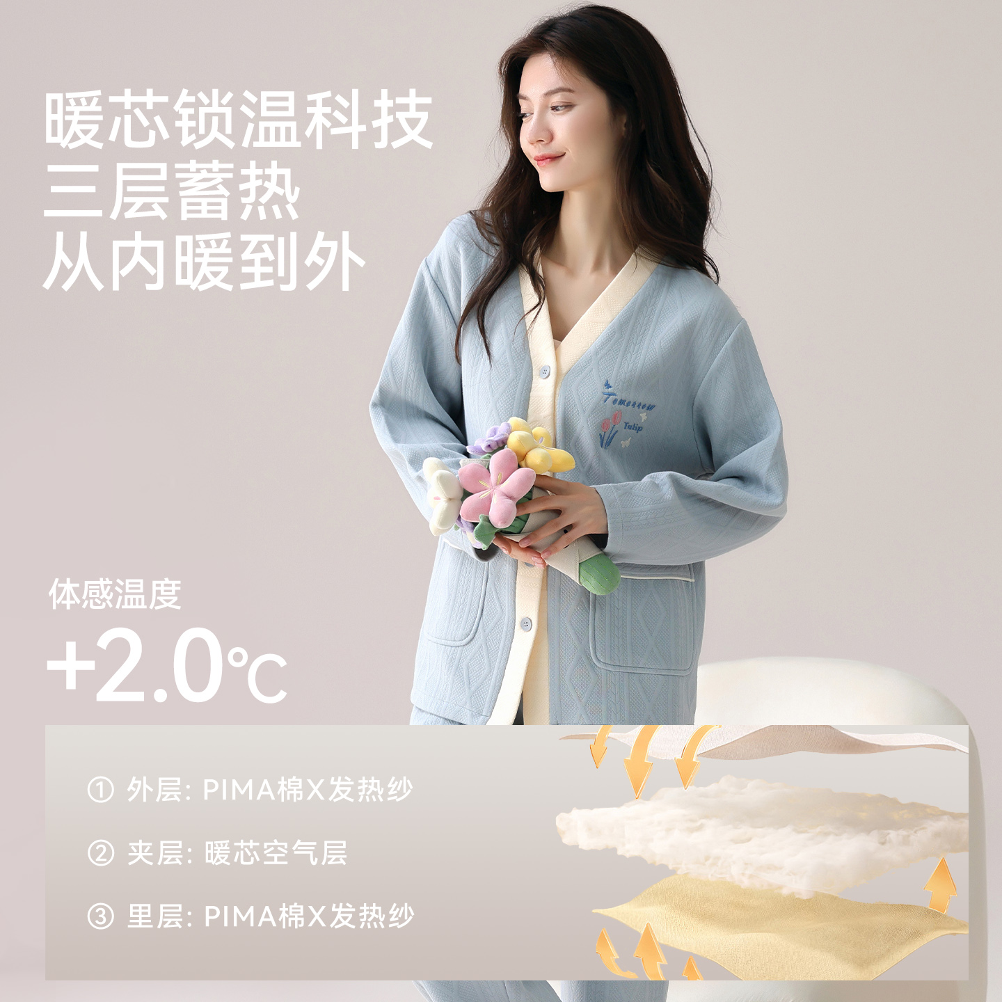 2025年新款 空气棉睡衣女春秋加厚纯棉家居服秋冬季 夹层薄夹棉套装