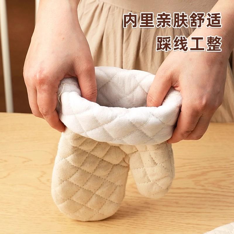 耐高温蒸烤箱用防烫手套加长加厚棉麻防滑微波炉隔热手套厨房家用