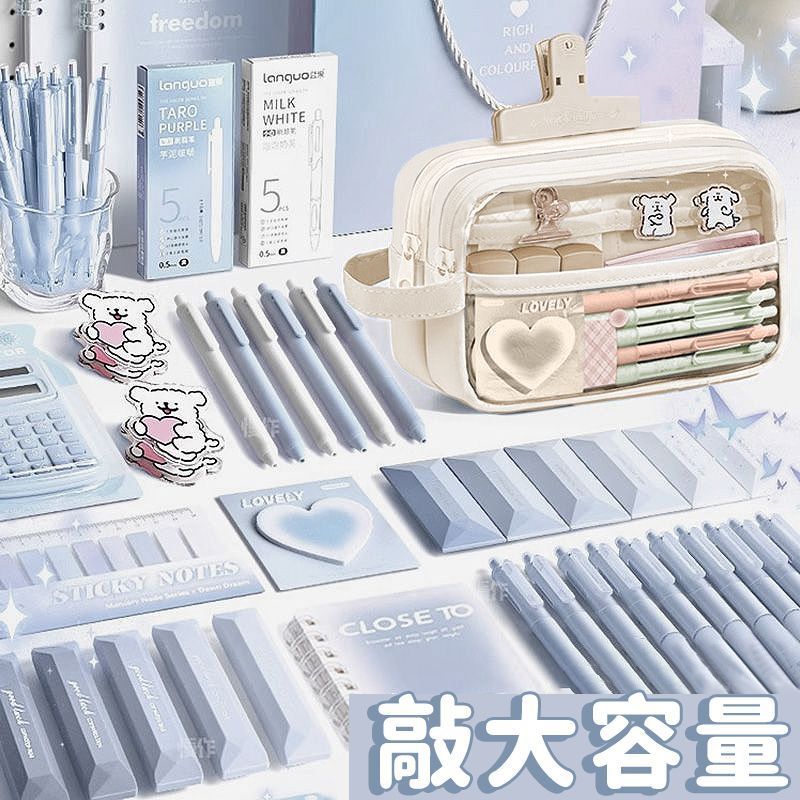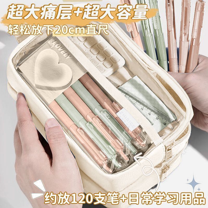 双层透明网纱笔袋考试专用大容量文具袋简约中考高考ins风2025新款 流行高颜值女孩子男生初中生高中生铅笔盒