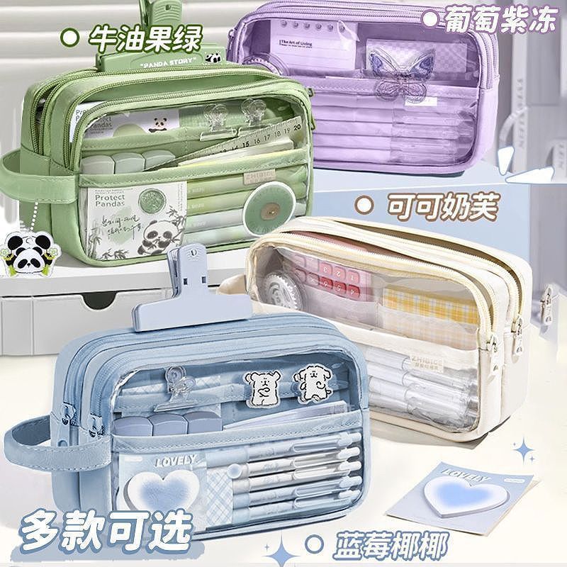 笔袋ins日系帆布高颜值小众透明简约糖果色新款 never巨能装 无忧 一年级笔袋男孩小学生女孩学习用品 正品