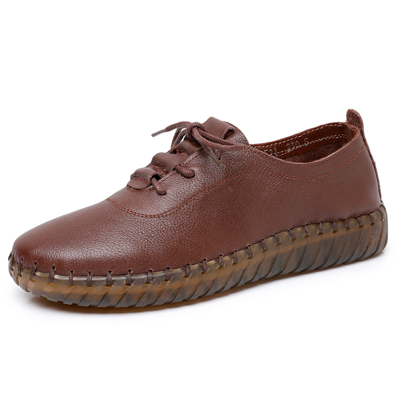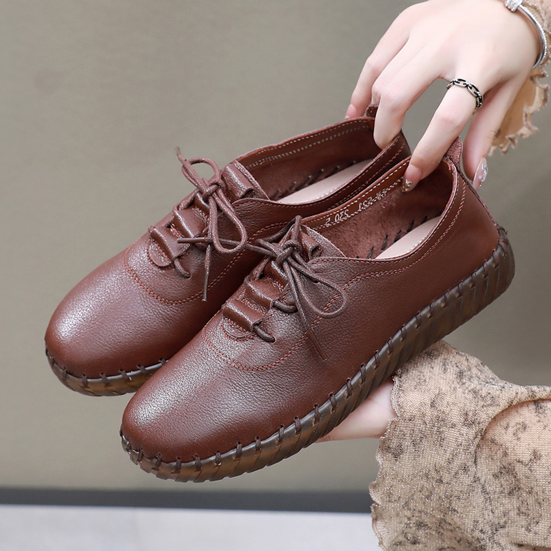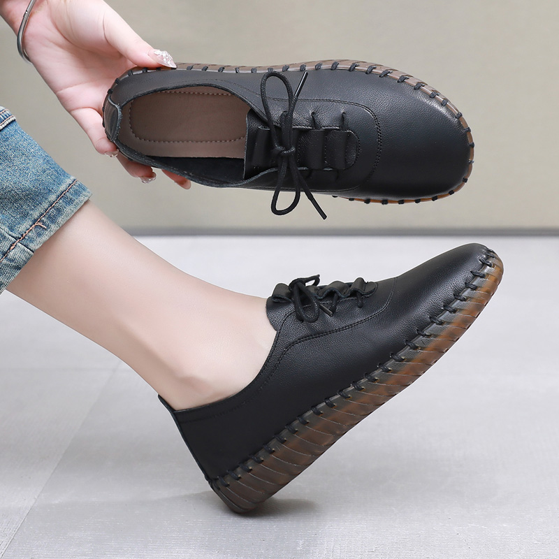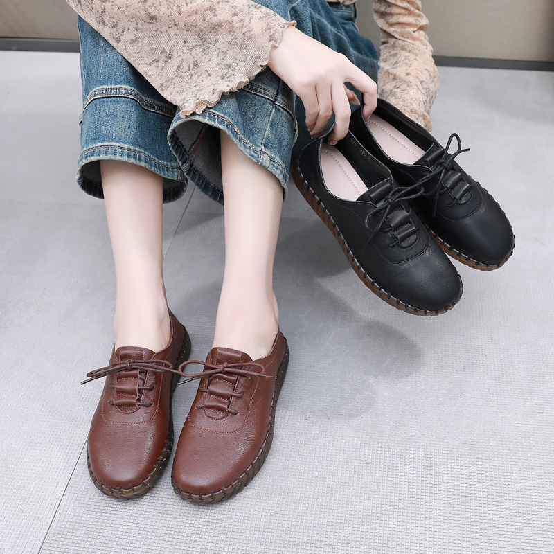 女2025秋季 休闲牛皮鞋 新款 手工女鞋 子 软底软皮平底妈妈鞋 真皮单鞋