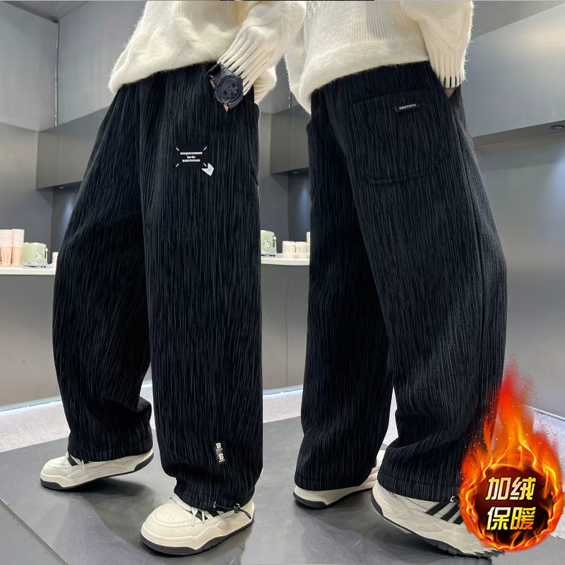 帅气潮童中大童休闲裤 男童条绒裤 加绒加厚一体绒直筒宽松2025新款