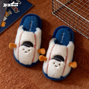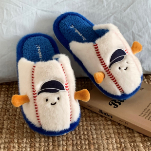包头毛毛鞋 男女冬保暖居家防滑情侣个性 ins 可爱棒球棉拖鞋 细细条