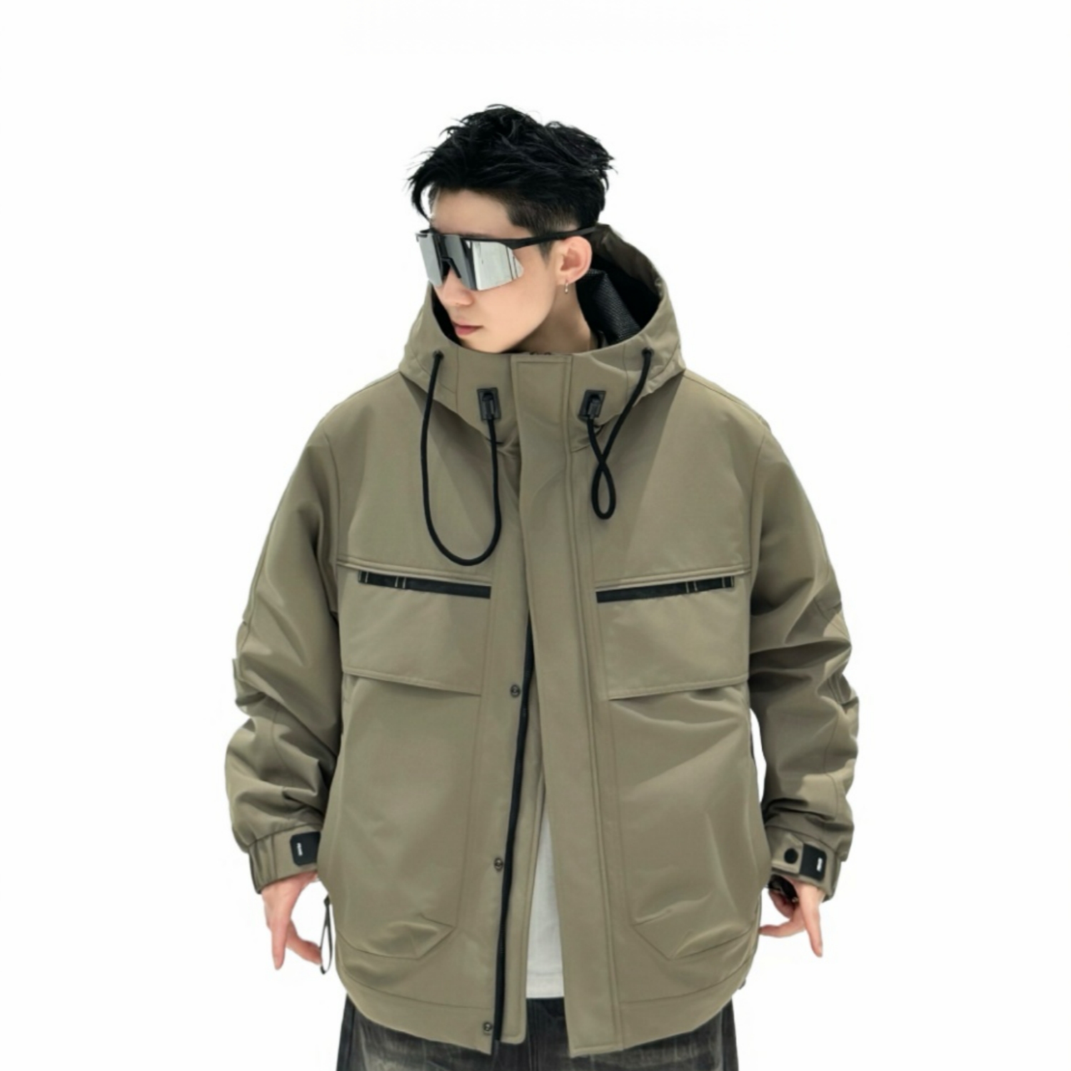 2025秋冬加厚保暖夹克宽松拉链口袋工装 外套情侣户外运动夹棉上衣