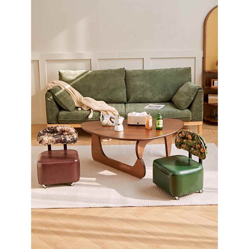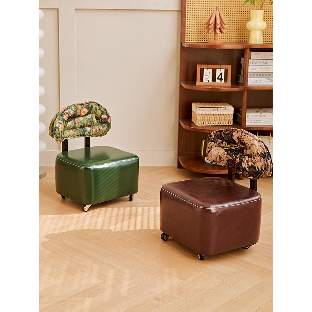 实木凳子家用靠背小椅子移动沙发凳软包换鞋 凳万向轮板凳家用矮凳